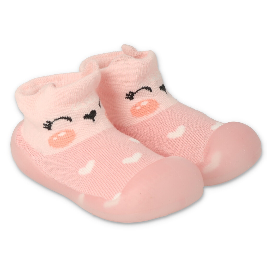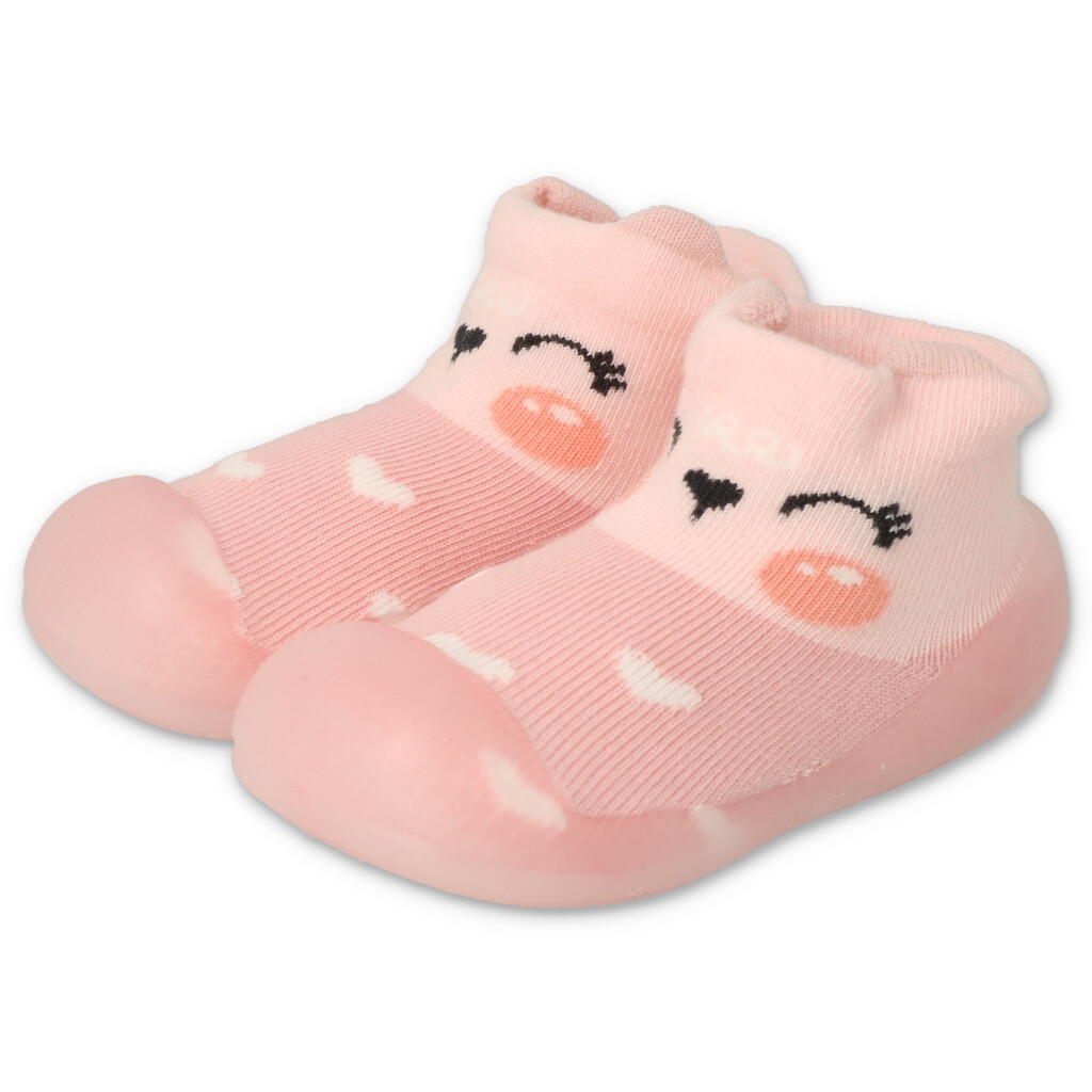 Ces chaussures de marche sont composées d'une chaussette élastique qui recouvre parfaitement le pied et d'une semelle antidérapante qui assure stabilité et sécurité. Leur conception bien pensée signifie qu'ils n'alourdissent pas le pied de l'enfant et n'exercent pas de pression sur celui-ci, ce qui est extrêmement important à un stade aussi précoce de développement. La forme de la chaussure garantit qu'elle ne glisse pas lorsque le bébé bouge, ce qui assure un confort tout au long du port.