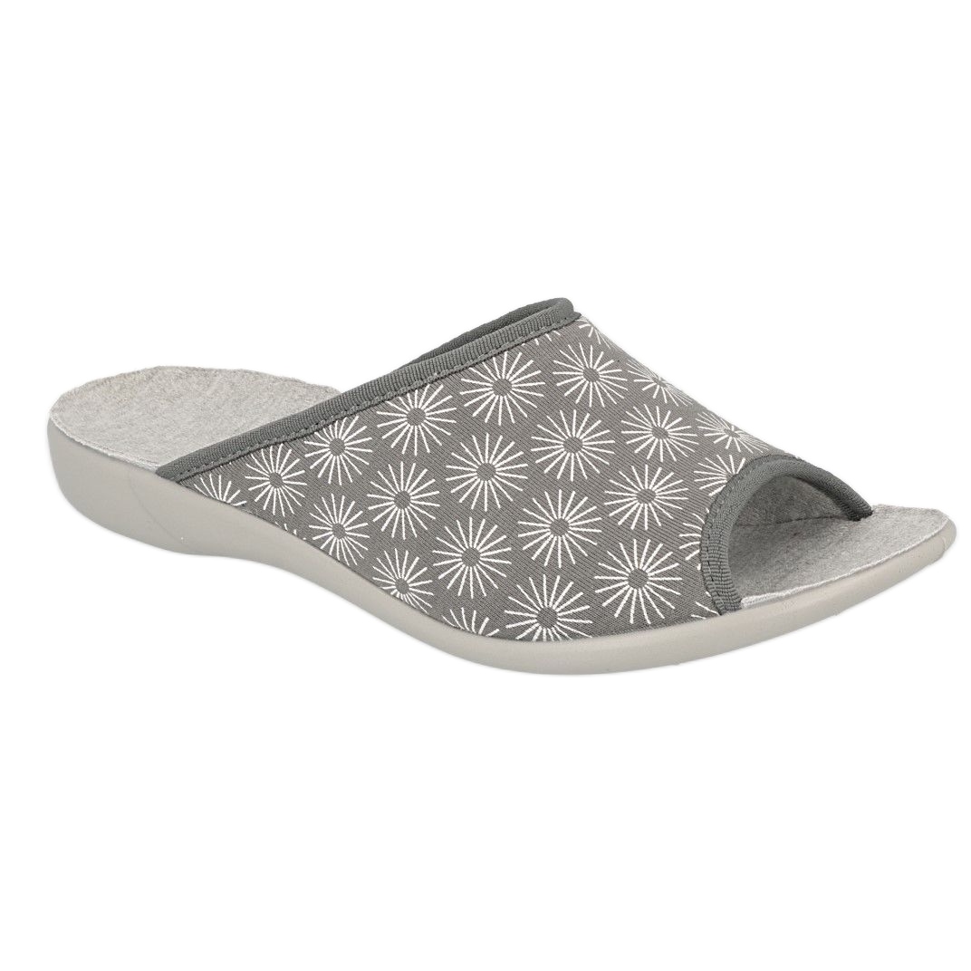 Les pantoufles féminines élégantes et pratiques Befado Viki sont une proposition idéale pour la maison et pour le plein air. Le matériau gris avec un motif délicat dans les étoiles ajoute du charme, et la conception universelle les fait fonctionner dans n'importe quel intérieur.