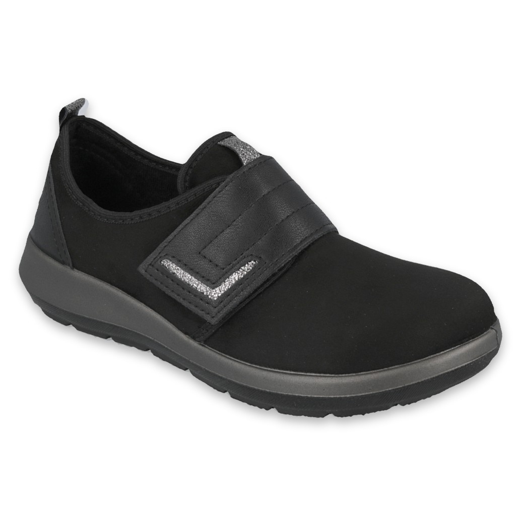 Chaussures fermeture scratch féminines de Befado 156d002 - chaussures de maison noires, confortables et pratiques.