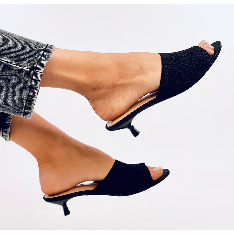 Les volets ouverts sur le noir de Kaczuszka Bertini sont un excellent choix pour les femmes à la recherche d'une combinaison d'élégance et de confort. Ces tongs à la mode sur un talon bas avec une hauteur de 4,5 cm se distinguent non seulement par une apparence attrayante, mais aussi une fonctionnalité. Une large ceinture de tissu flexible et ouvert s'adapte parfaitement au pied, offrant un confort lors du port.