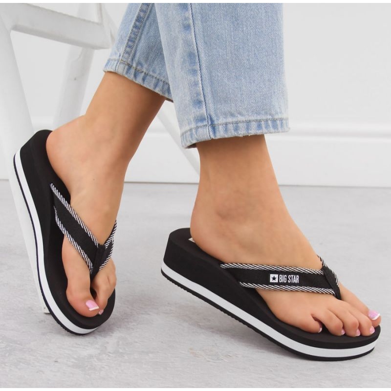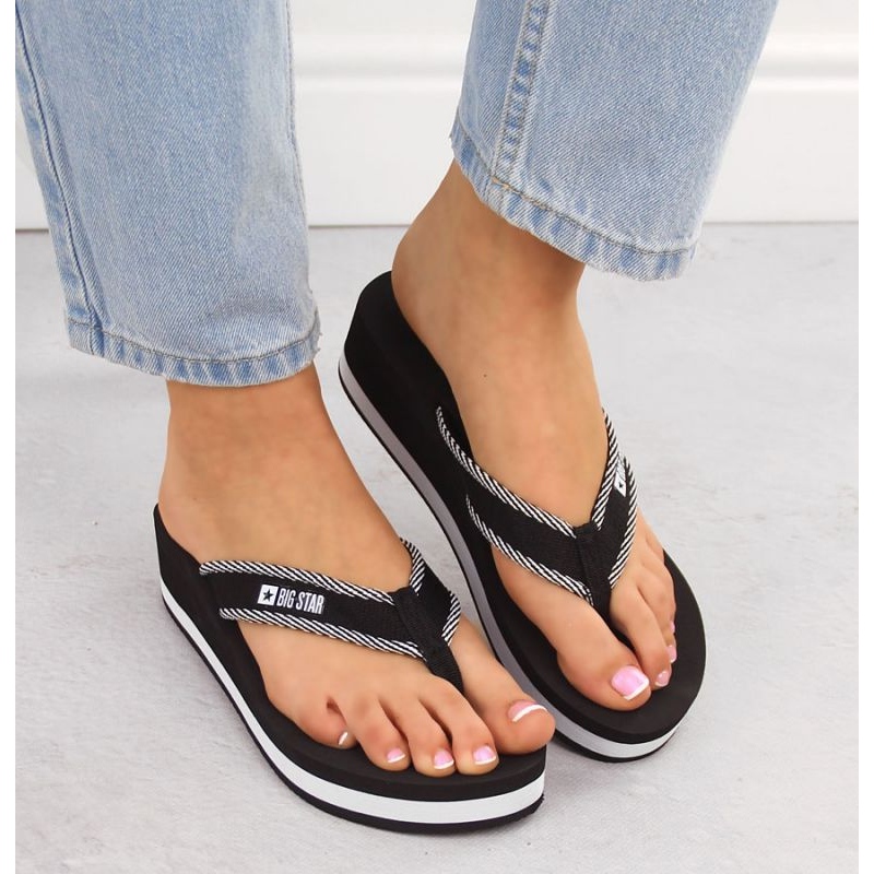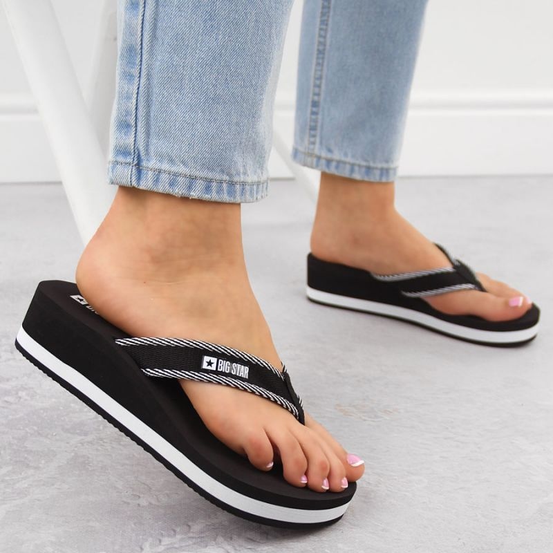 Big Star NN274A727 Les cales en noir sont un excellent choix pour chaque femme qui apprécie le confort et le style. Ces tongs élégants sont excellents non seulement dans les circonstances quotidiennes, mais aussi lorsqu'ils se détendent par l'eau, dans les stations d'été ou à la piscine.