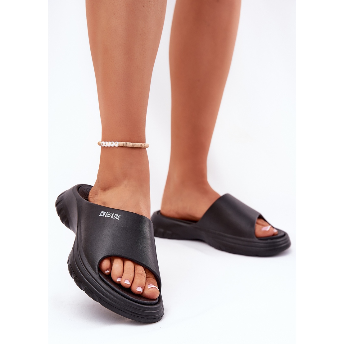 Une couleur noire élégante et un logo Clear Big Star Ajouter l'élégance et le caractère moderne, qui vous permet de correspondre facilement aux tongs à diverses stylifications d'été. N'oubliez pas de suggérer une table de taille lors du choix d'une taille, qui vous permettra de trouver l'ajustement parfait.
