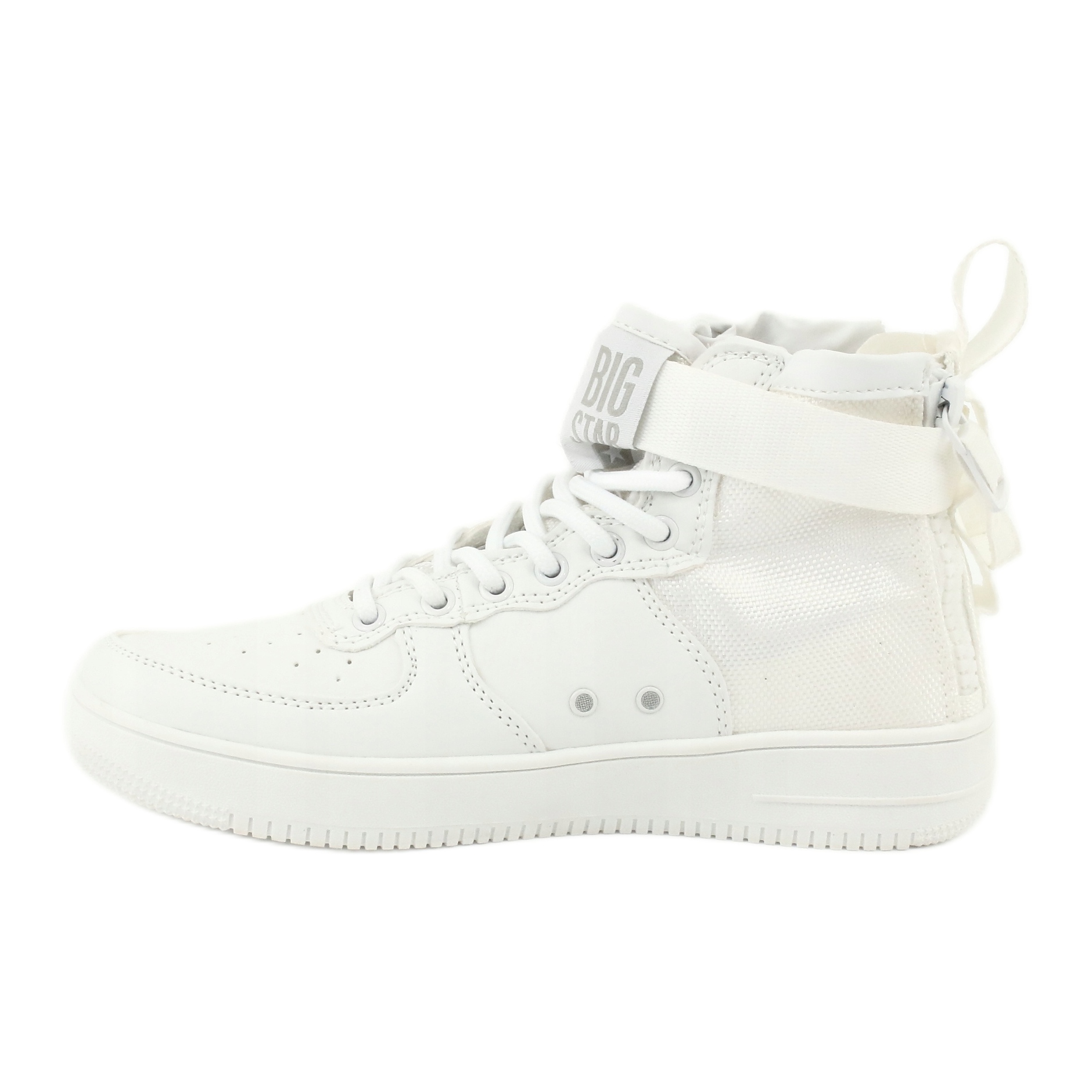 Big Star 274648 - Sneakers blancs (haut), en cuir écologique avec des inserts de matériau. Des chaussures confortables et élégantes tous les jours - parfait pour une promenade, une ville et des voyages. L'apparence classique combinée à des solutions pratiques en fait un choix universel pour de nombreux styles.