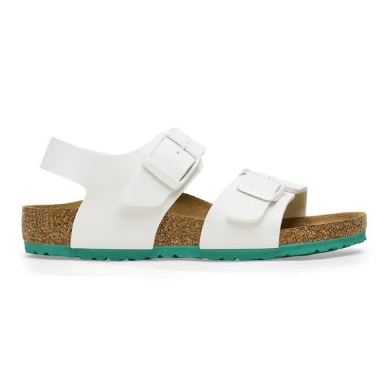 Birkenstock New York Kid BS 1026836 Sandales dans le sol du désert blanc / vert est le choix parfait pour les enfants actifs. Ils ont été créés pour les plus jeunes, combinant la durabilité avec le design moderne. Fabriqués en matériau Birko-Flor® innovant, ils se caractérisent par une résistance aux dommages, ce qui les rend parfaits pour une utilisation quotidienne.