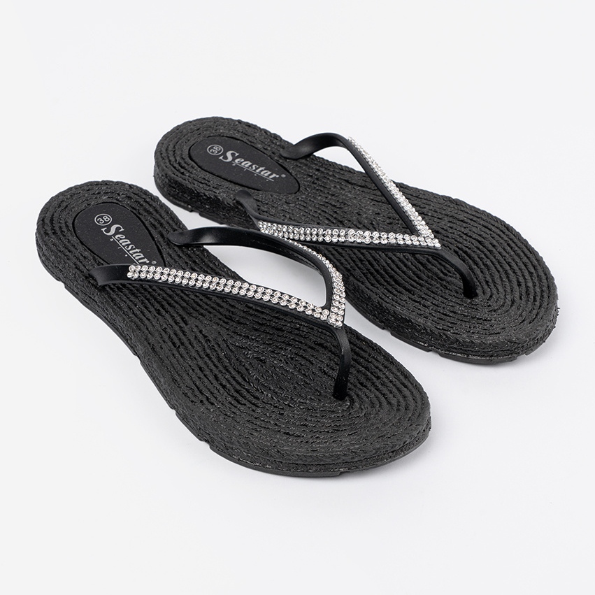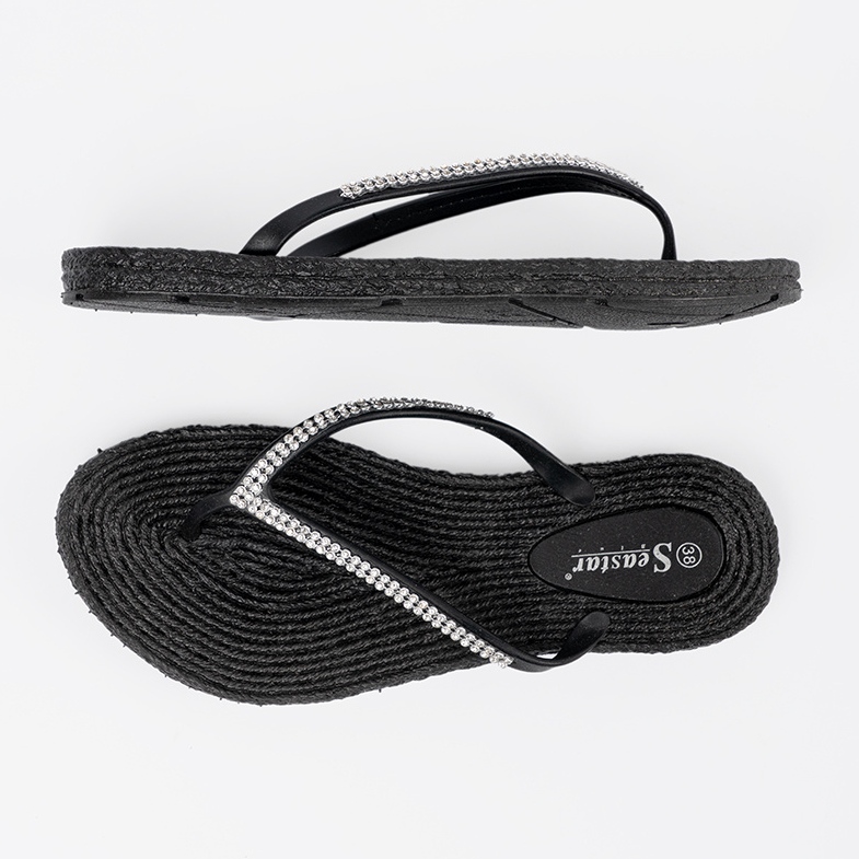 Détails: Seastar Black Flip -flops avec zircons le noir