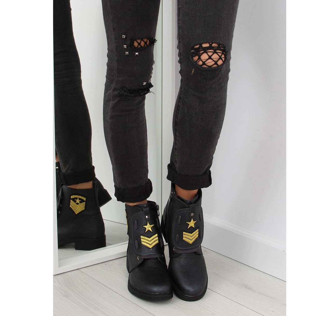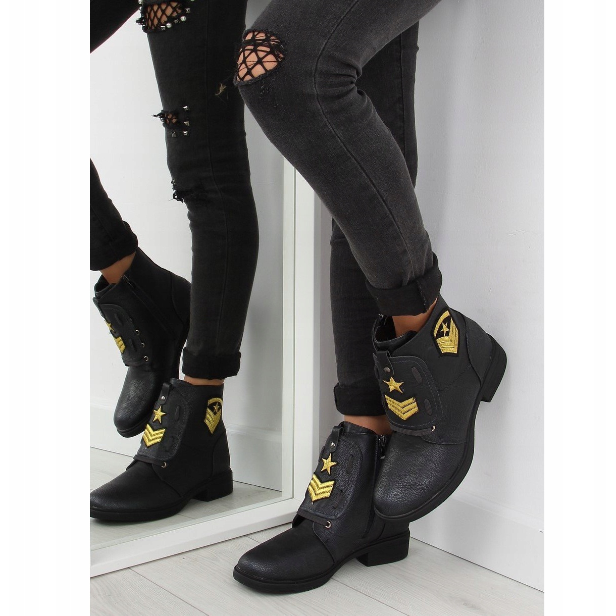 Nous vous présentons les bottes de travail militaire H-4 Black, qui complèteront parfaitement n'importe quel style de tous les jours. Ces bottes plates noires allient design original et fonctionnalité. Les patchs dorés de style militaire soulignent leur apparence unique, ce qui en fait un choix idéal pour les femmes qui apprécient la mode et le confort.