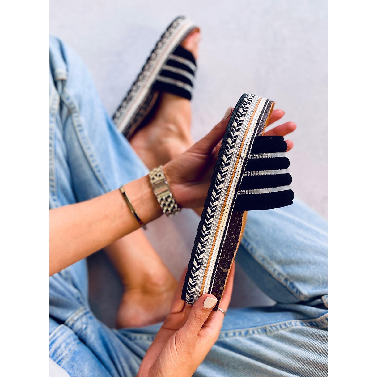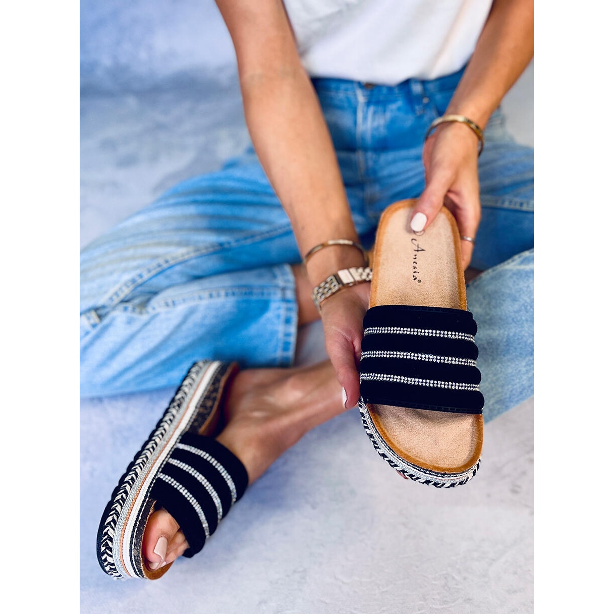 Découvrez l'élégance et le confort dans les tongs classiques à semelle décorée - N-96 Black. Ces tongs pour femmes uniques à semelle haute allient design moderne et fonctionnalité au quotidien. Le daim écologique noir leur donne un look élégant, et les strass brillants qui décorent les chaussures les font se démarquer dans la foule.