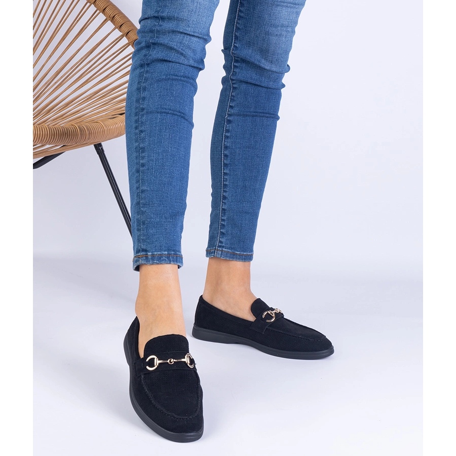 Ces mocassins sont caractérisés par une basse hauteur, ce qui les rend très confortables à porter. La fixation d'insertion le facilite la mise en place et la suppression, ce qui est extrêmement pratique dans le quotidien. Le modèle ouvert et la décoration dorée leur donnent l'élégance et l'originalité, ce qui les rend idéales quotidiennes et pour des occasions plus formelles.