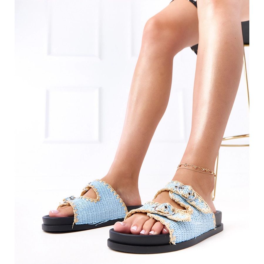 Les journées ensoleillées deviennent encore plus agréables grâce à leur couleur bleue intense, qui se démarque parfaitement de l'arrière-plan des stylisations d'été. La semelle noire leur donne une élégance, et un design simple et adjorbem fait que les tongs s'adaptent facilement à de nombreuses tenues - du jean décontracté aux robes aérées.