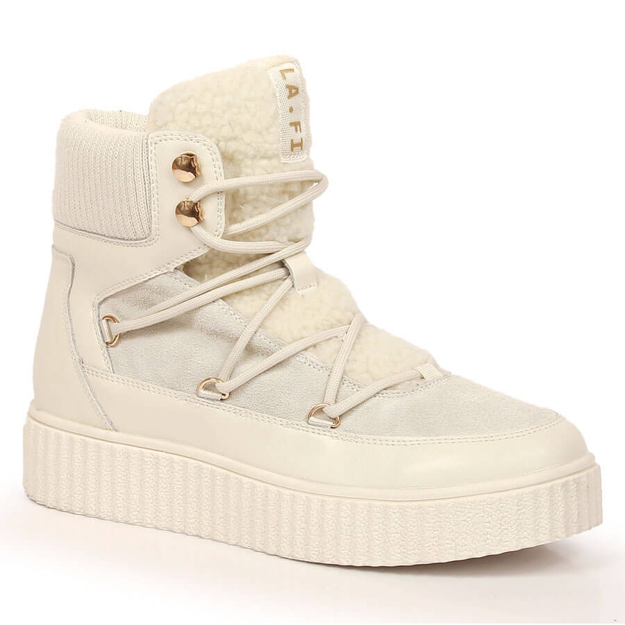 Détails: Boots à lacets en cuir sur plateforme Laura La.Fi beige clair