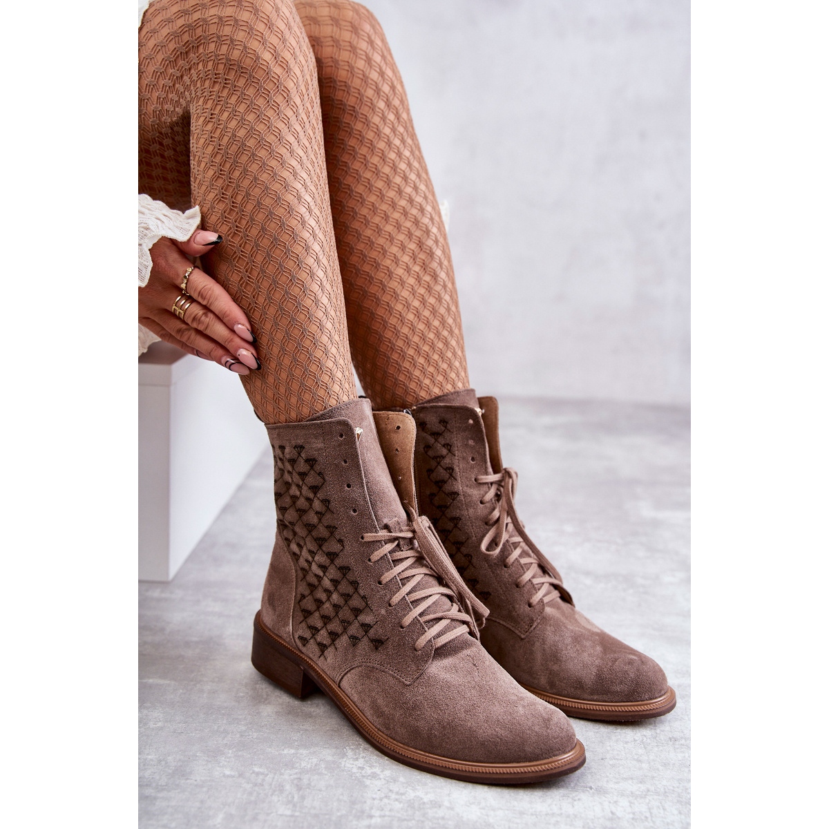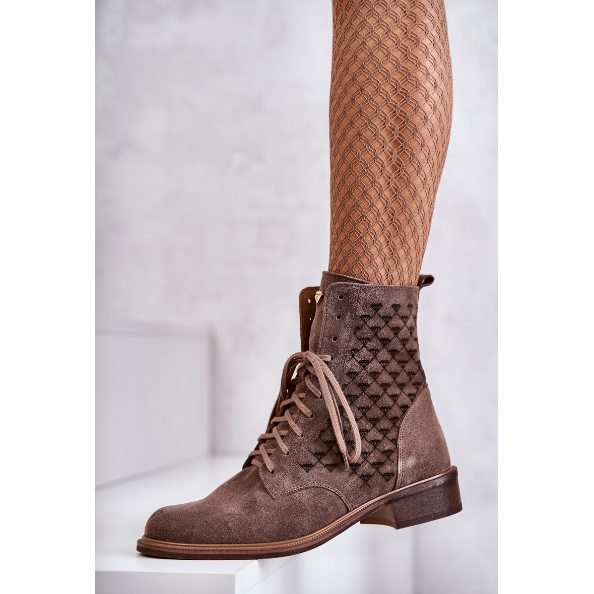 - Modèle: Boots à lacets en daim Nicole 2751 Marron