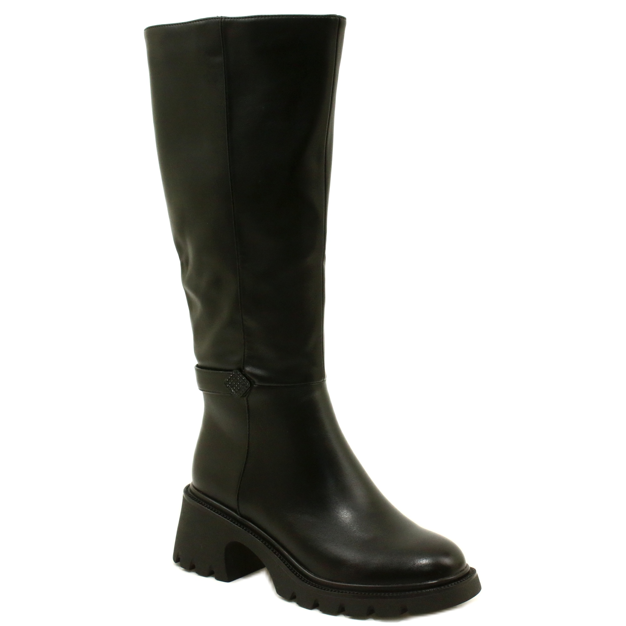 Les bottes élégantes et noires Filippo combinent une coupe intemporelle avec des détails à la mode. En cuir écologique, isolé avec une fourrure de chaussures douces et denses, ils sont parfaits pour les jours d'automne plus froids et l'hiver froid. Un type de bloc stable et plus large et une tige confortable atteignant le genou assurent le confort et l'apparence élégante chaque jour et pour des occasions plus sophistiquées.