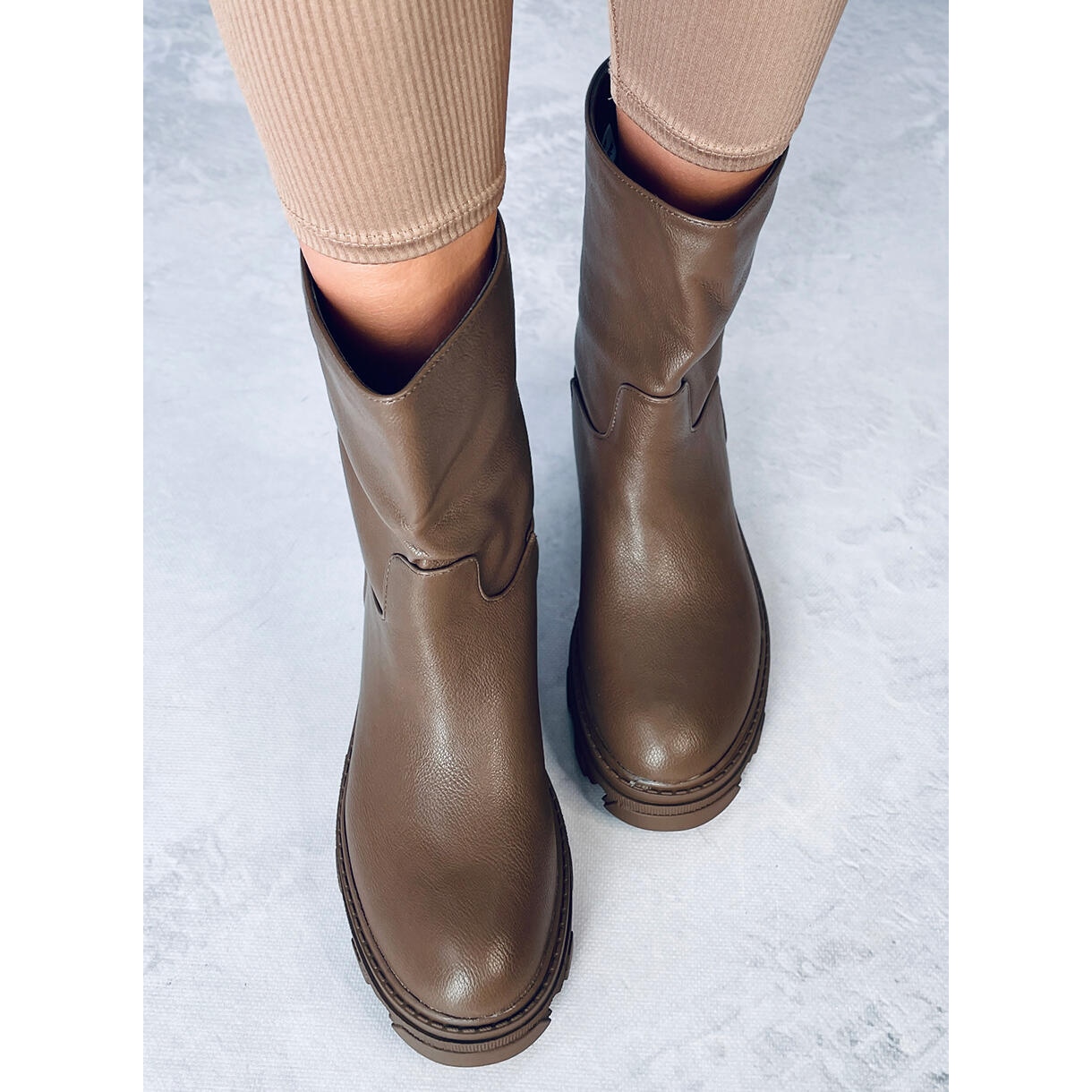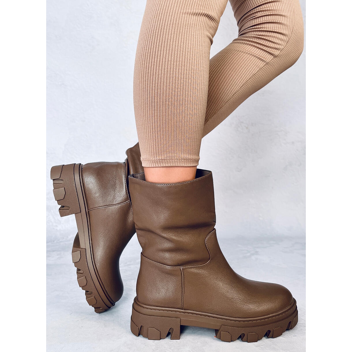 Les bottes pour femmes à l'aspect cuir marron font partie de la collection KeeShoes d'un fabricant marqué Other Brand. Elles se distinguent par une tige simple et une semelle épaisse et marron, qui non seulement assure le confort, mais isole également bien du froid. Les bottines montent à la cheville et leur talon est plat mesurant 4,5 cm. Elles ont un bout rond et s'enfilent, ce qui les rend faciles à enfiler.
