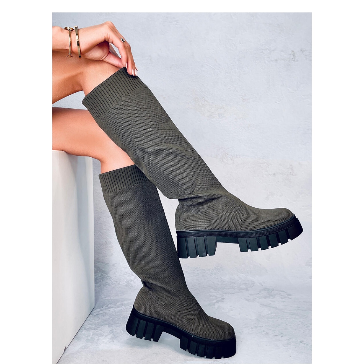 Bottines chaussettes pour femme à semelle massive. Ils ont la coupe militaire la plus tendance avec une tige flexible, grâce à laquelle ils s'adaptent parfaitement à la jambe et sont faciles à enfiler. C'est un incontournable cette saison ! extérieur - tissu de chaussette.