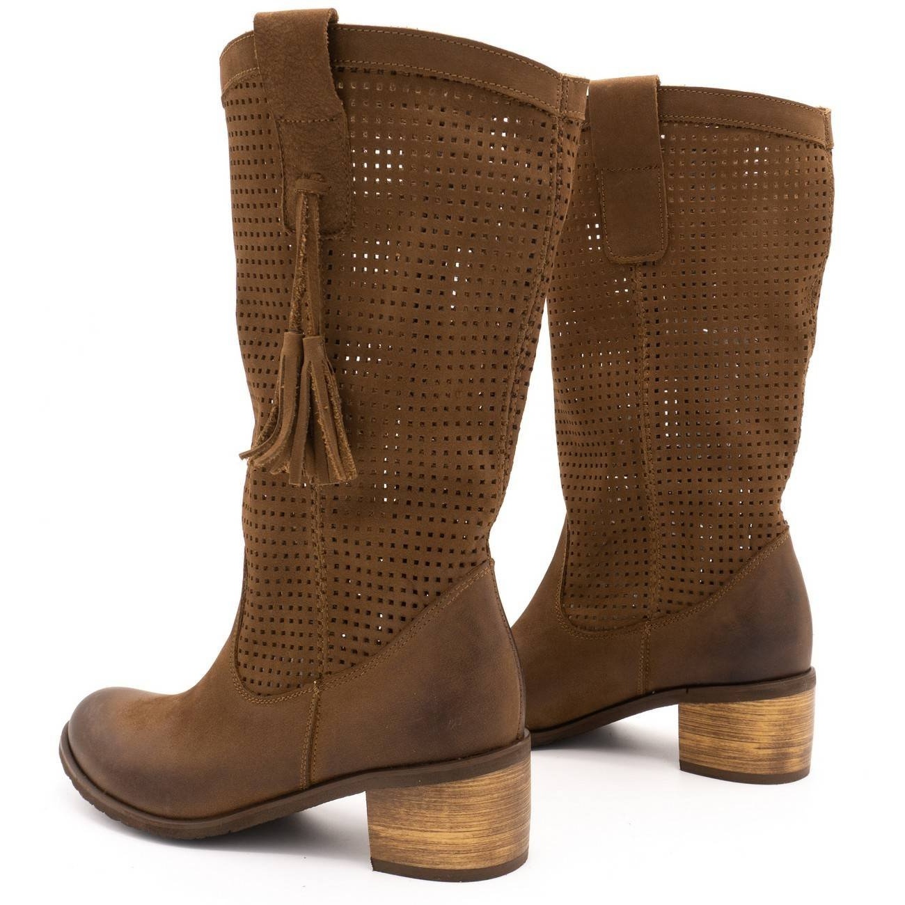 Fabriquées en cuir extérieur naturel de haute qualité, les bottes offrent non seulement un look parfait, mais aussi une durabilité. L'intérieur des chaussures est également recouvert de cuir naturel, ce qui augmente le confort de port. De plus, le motif ajouré et les franges décoratives leur confèrent un caractère unique qui attire l'attention.