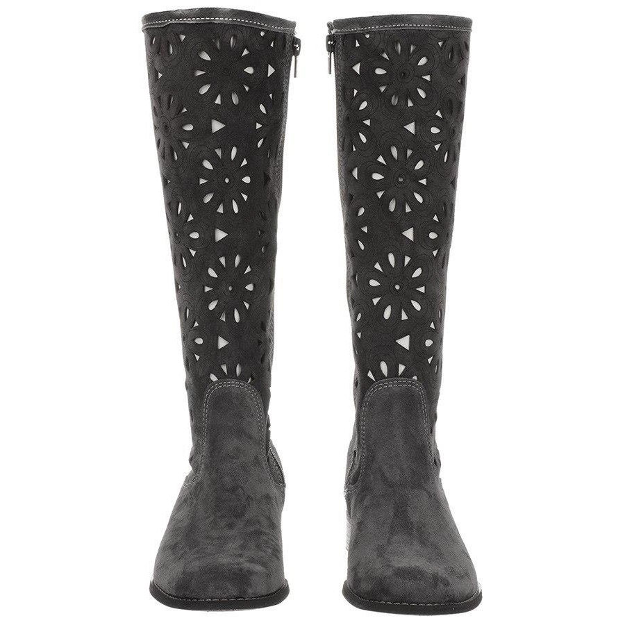 Le produit est des bottes ajourées pour femmes d'Olivier. Les chaussures sont conçues pour être portées à tout moment de l'année. Les bottes sont en cuir naturel, ce qui les rend douces et épouse bien la forme des jambes. Elles sont également dotées d'une semelle synthétique solide avec un talon bas de 3 centimètres. Le dessus de la chaussure présente un motif géométrique ajouré et le bas de la tige est isolé. Les bottes sont fermées par une fermeture éclair, ce qui les rend faciles à enfiler. Le modèle a une coupe classique, avec une tige jusqu'aux genoux. Le produit est disponible en gris. Les chaussures n'ont pas de motif dominant. Le matériau intérieur est du cuir naturel. L’entretien général des chaussures implique l’utilisation de produits d’entretien et de rénovateurs en daim et nubuck. Le produit est livré dans l'emballage d'origine du fabricant. Le numéro de code du fabricant est BM104687. Les chaussures sont de la collection KeeShoes. La hauteur du talon est de 3 cm. Le type de talon est un talon plat. Les bouts sont ronds et la fermeture est une fermeture éclair. Les bottes sont parfaites pour le temps polonais. Les produits sont disponibles dans de nombreuses couleurs.