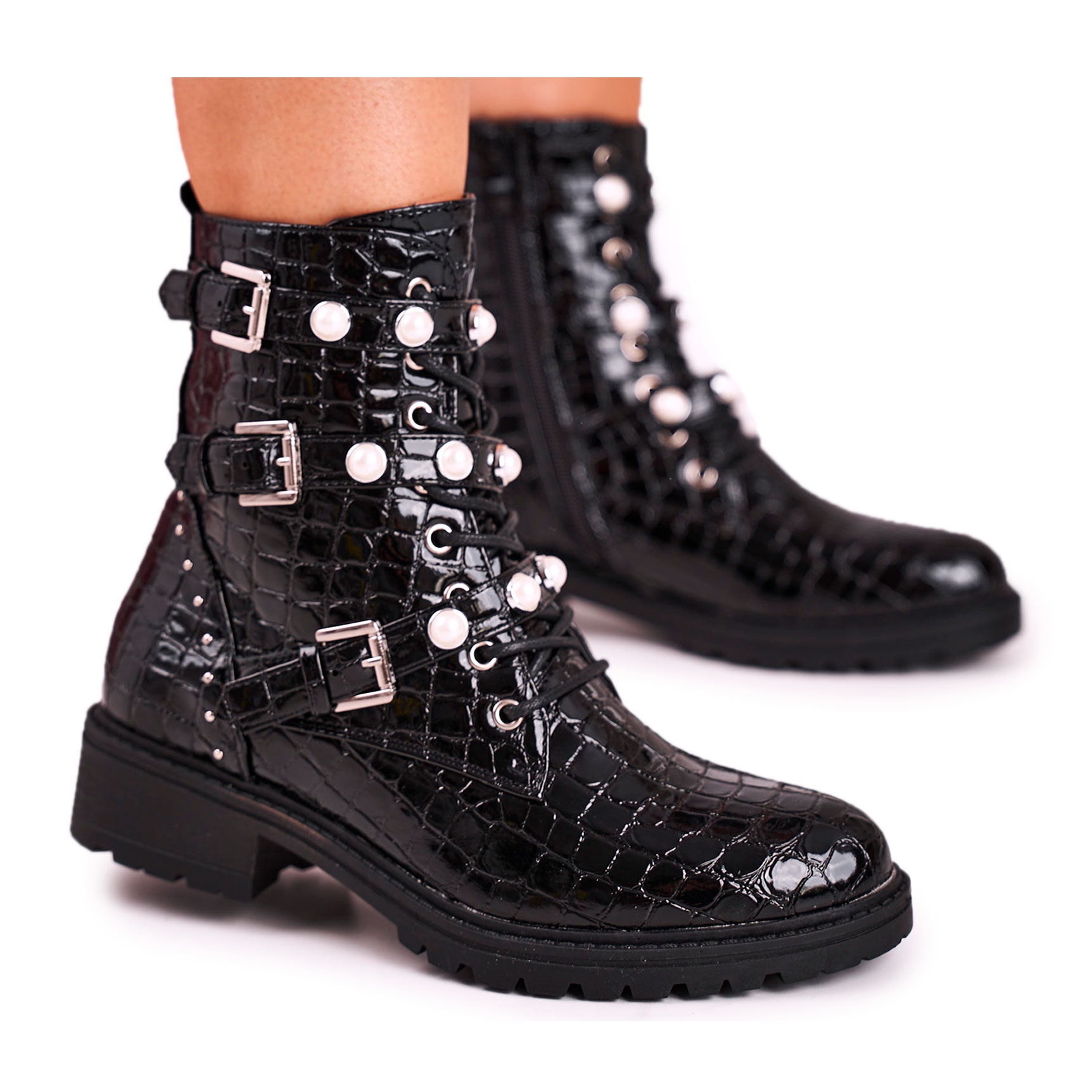 Détails: Boots Avec Perles Laquées Noir Whitney Motif Animal le noir