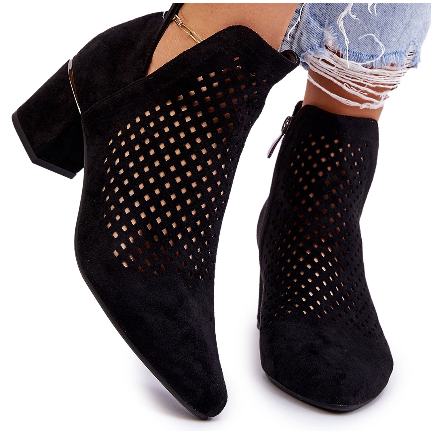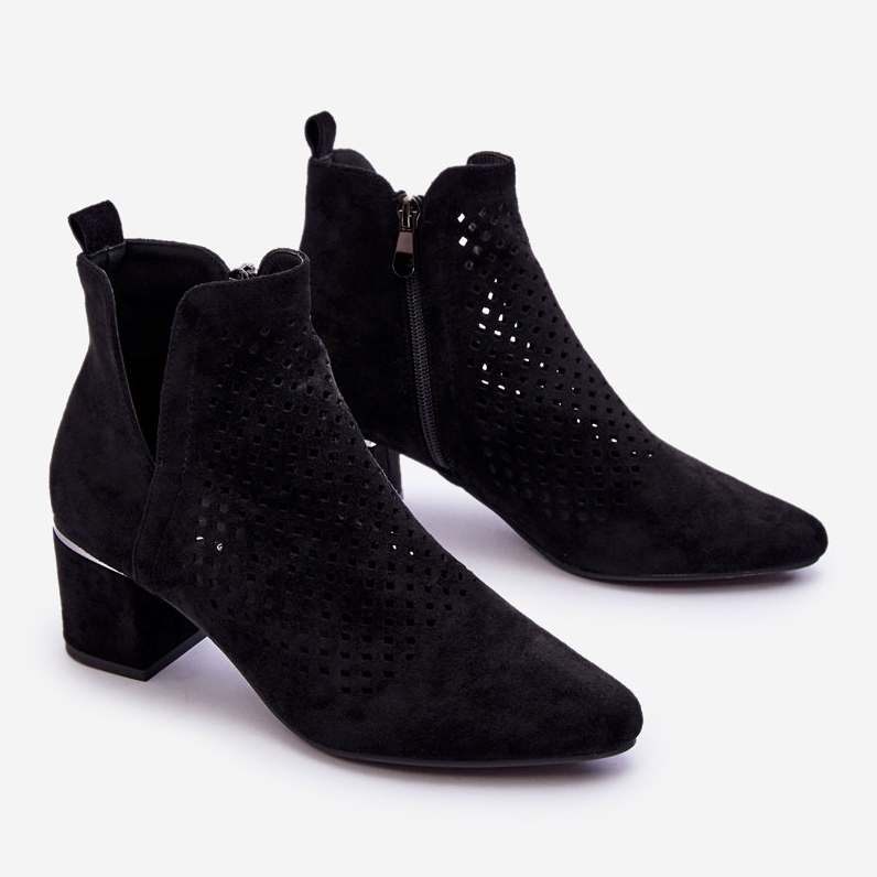 Vinceza Vinceza Boots Blakely Noires En Daim Ajouré Avec Talon Ajouré le noir