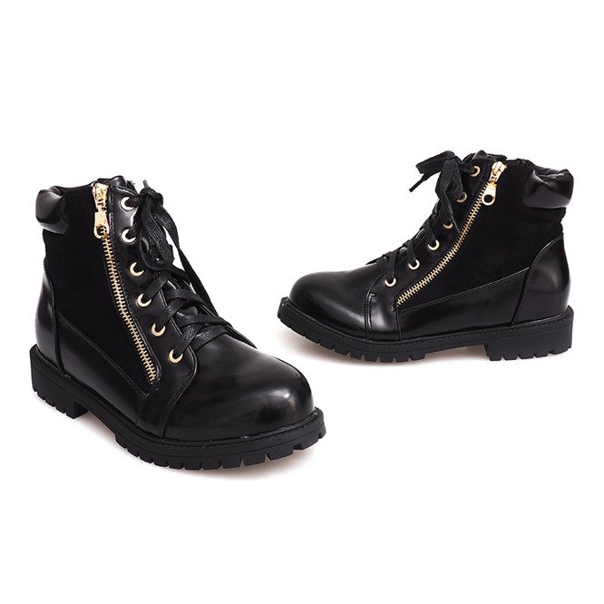 Fabriquées en cuir écologique de haute qualité, les bottes offrent une excellente protection contre le froid, ce qui en fait un choix idéal pour les journées plus froides. Leur couleur noire classique leur permet de s'adapter à différents styles, du plus décontracté au plus spectaculaire. Grâce à la fermeture à lacets, ils s'ajustent parfaitement au pied, ce qui permet un maximum de confort lors du port.