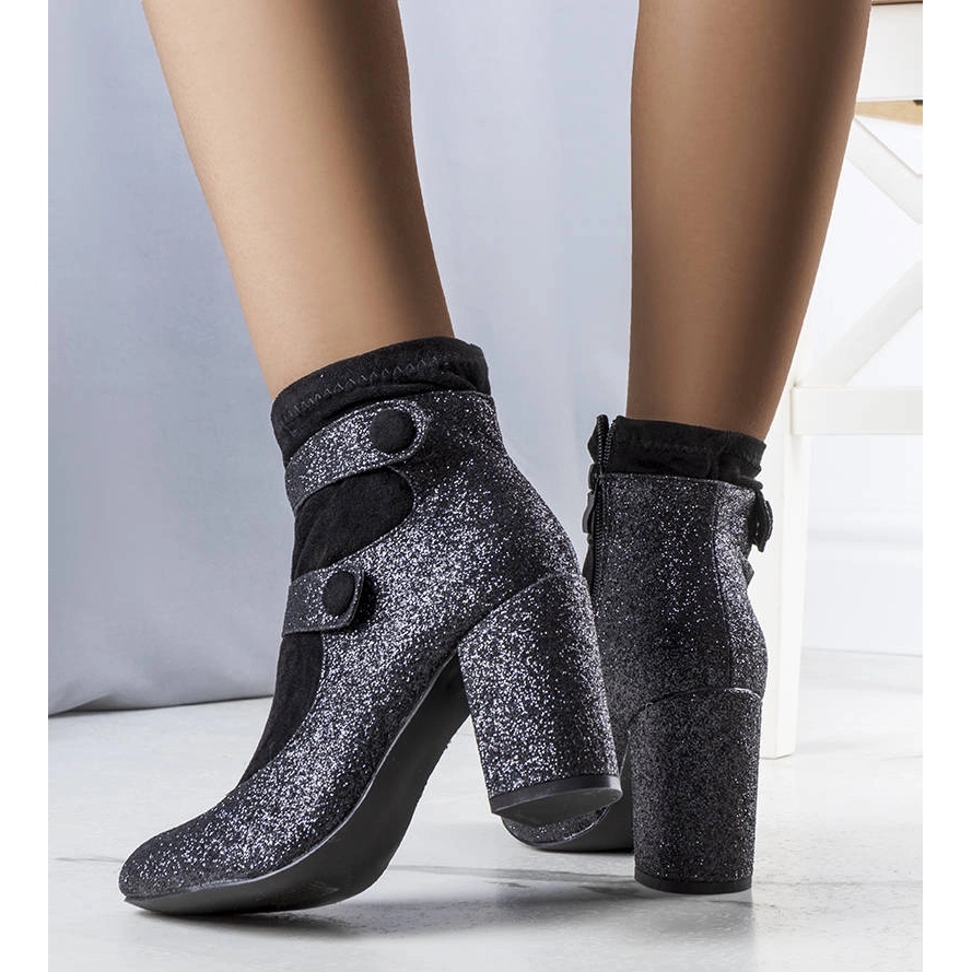 Les bottes phénoménales d'Orlando combinent un style féminin avec la commodité du port. La partie supérieure en cuir en daim écologique avec un effet de brocart délicat attire l'œil, et le nez d'amande a optiquement mince la silhouette. Un type de talon stable (8 cm) donne un profil élégant, tout en assurant le confort avec une marche plus longue. Le modèle atteint la cheville (hauteur supérieure d'environ 20 cm) et est fixé avec une fermeture éclair, ce qui le rend plus facile à mettre.