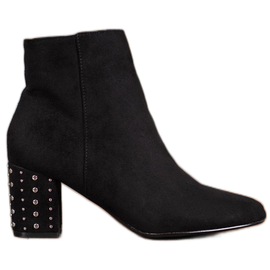 Nous présentons les bottines classiques pour femmes Nio Nio dans une élégante couleur noire, qui seront le complément parfait à toute garde-robe. Ces chaussures extrêmement élégantes se caractérisent par un talon de 6,5 centimètres sur un bloc solide, qui assure non seulement le confort, mais aussi la stabilité lors de la marche.