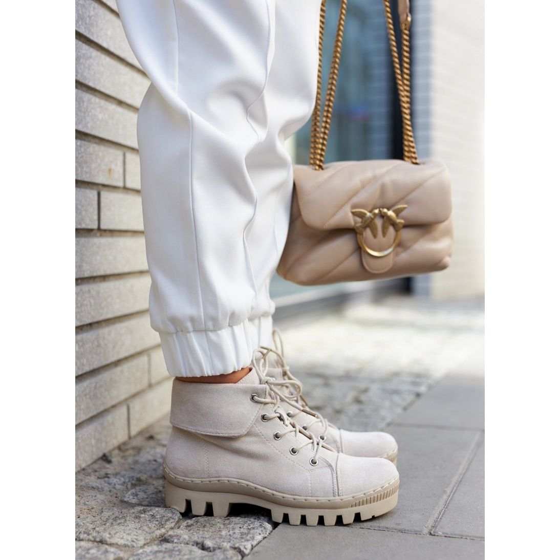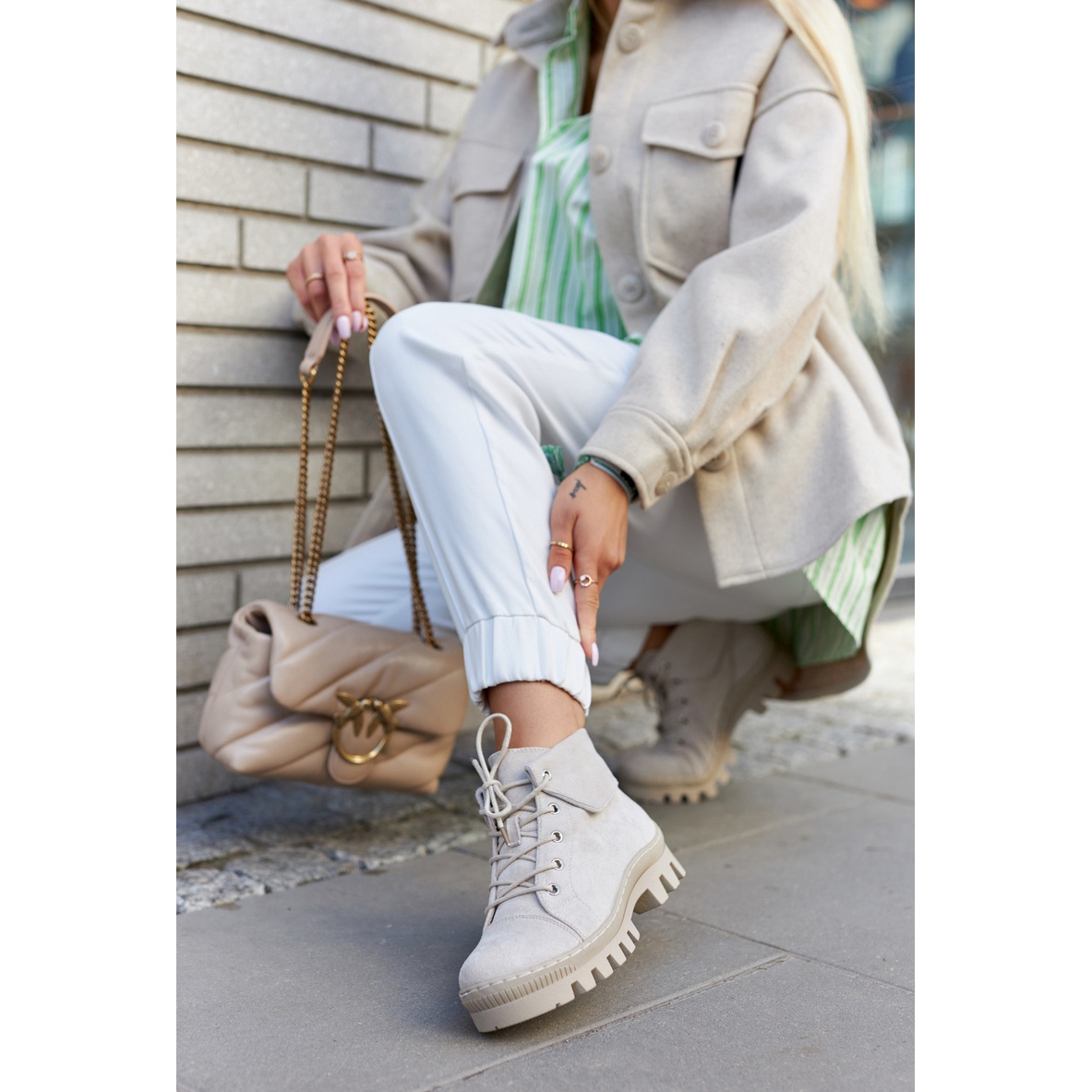 Les bottes ont des lacets ronds classiques qui permettent un ajustement parfait. Montées sur une semelle épaisse et tendance avec des découpes, elles offrent à la fois confort de port et esthétique. Un nez raidi et arrondi et une semelle intérieure de haute qualité en cuir écologique assurent un confort tout au long de la journée.