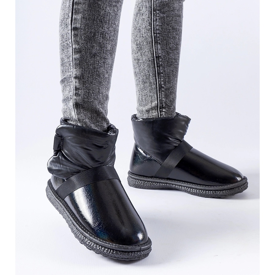 Bottes de neige courtes noires - style, chaleur et confort pour l'hiver. Court, pour les bottes de neige à la cheville (17 cm) dans une finition élégante et métallique sont excellentes dans les stylisations urbaines. Grâce à la fixation du fermeture scratch pratique, l'insertion et la correspondance des chaussures est rapide et confortable, et le réchauffement offre un confort thermique les jours plus frais.