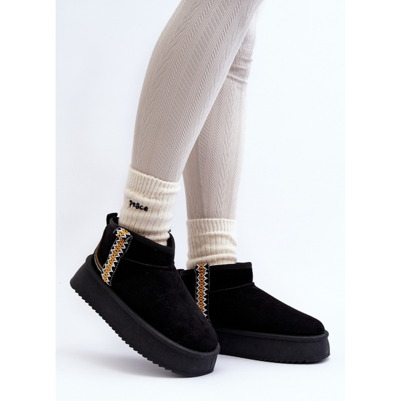 Découvrez la dernière tendance hivernale avec nos bottes de neige des femmes noires sur la plate-forme! Fabriqués en daim eco de haute qualité, ces chaussures sont une combinaison parfaite de style et de confort. Une semelle en caoutchouc épaisse offre une excellente isolation à partir d'un sol froid, ce qui en fait un choix idéal pour les jours froids.