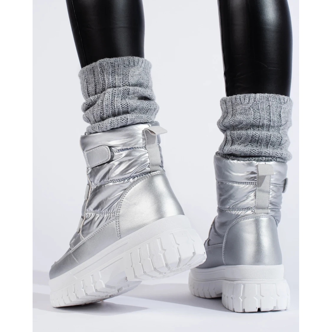Nous vous présentons des bottes de neige pour femmes élégantes et fonctionnelles avec velcro en argent, qui attireront certainement l'attention par leur design à la mode. Ces chaussures sont parfaites pour les journées froides tout en offrant confort et style.