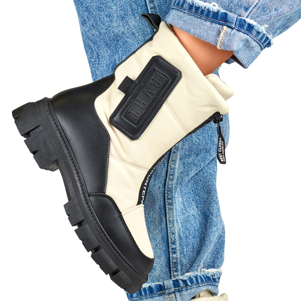 Bottes de neige des femmes beige sur une semelle noire - style et confort pour les jours plus frais