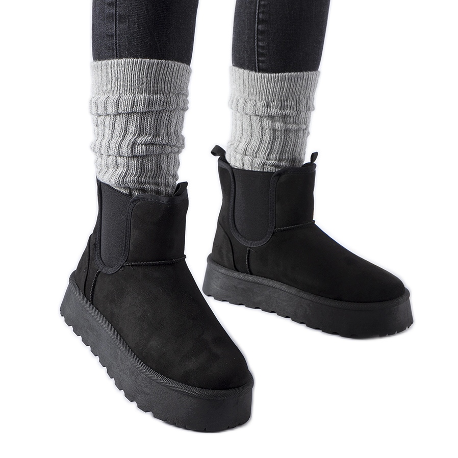 Détails: Boots de neige noires avec bandes élastiques sur les côtés par Bertino