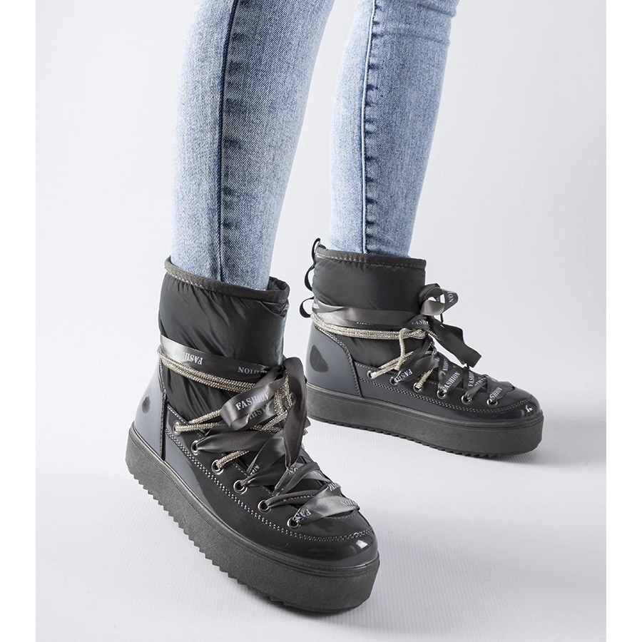 Bottes de neige alceo verni grise avec zircons - style et chaud pour l'hiver