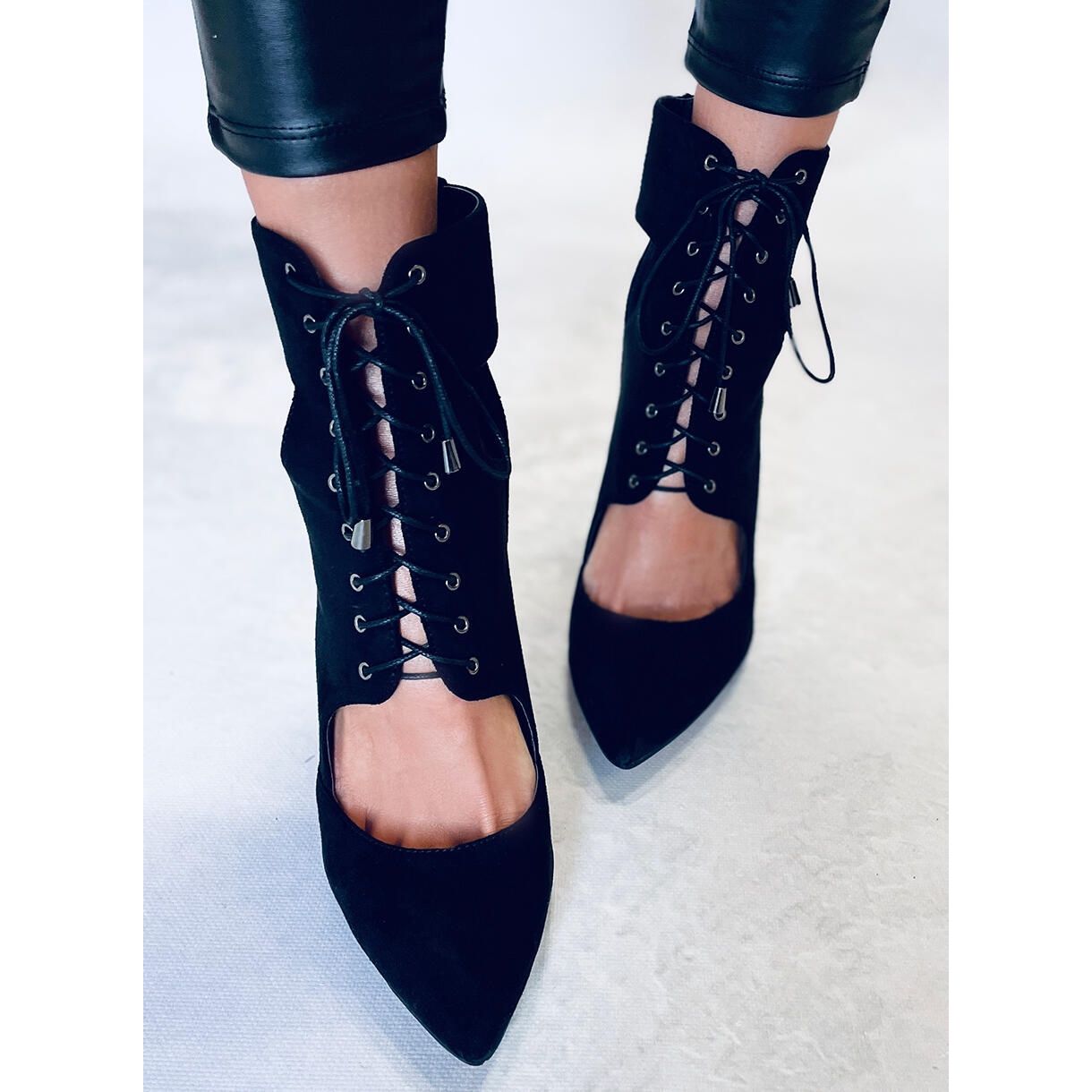 Détails: Boots découpées sur un pin Demi Nero le noir