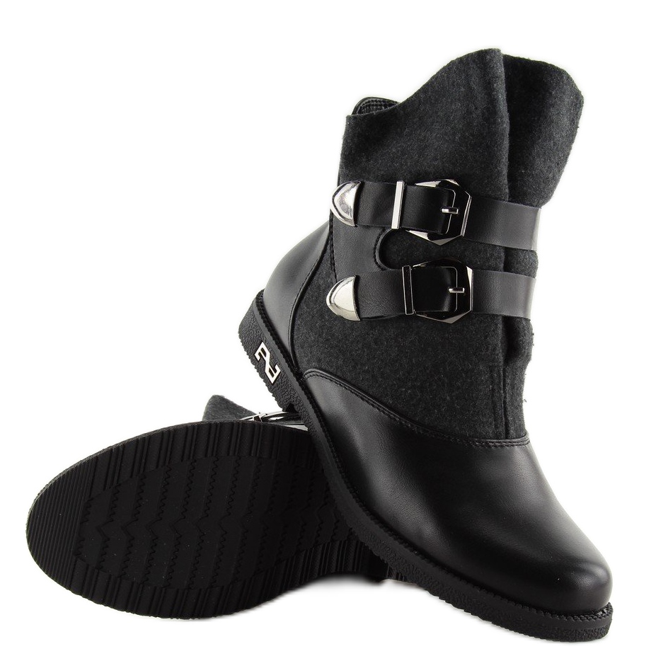 Découvrez les bottines parfaites pour les journées froides - nous vous présentons le modèle X659-1 en noir ! Ces superbes ouvrières allient design moderne et confort qui plairont sûrement à toutes les femmes. La tige en feutre et en cuir écologique brillant leur confère un caractère unique, et les détails sous forme de boucles soulignent en outre leur style.