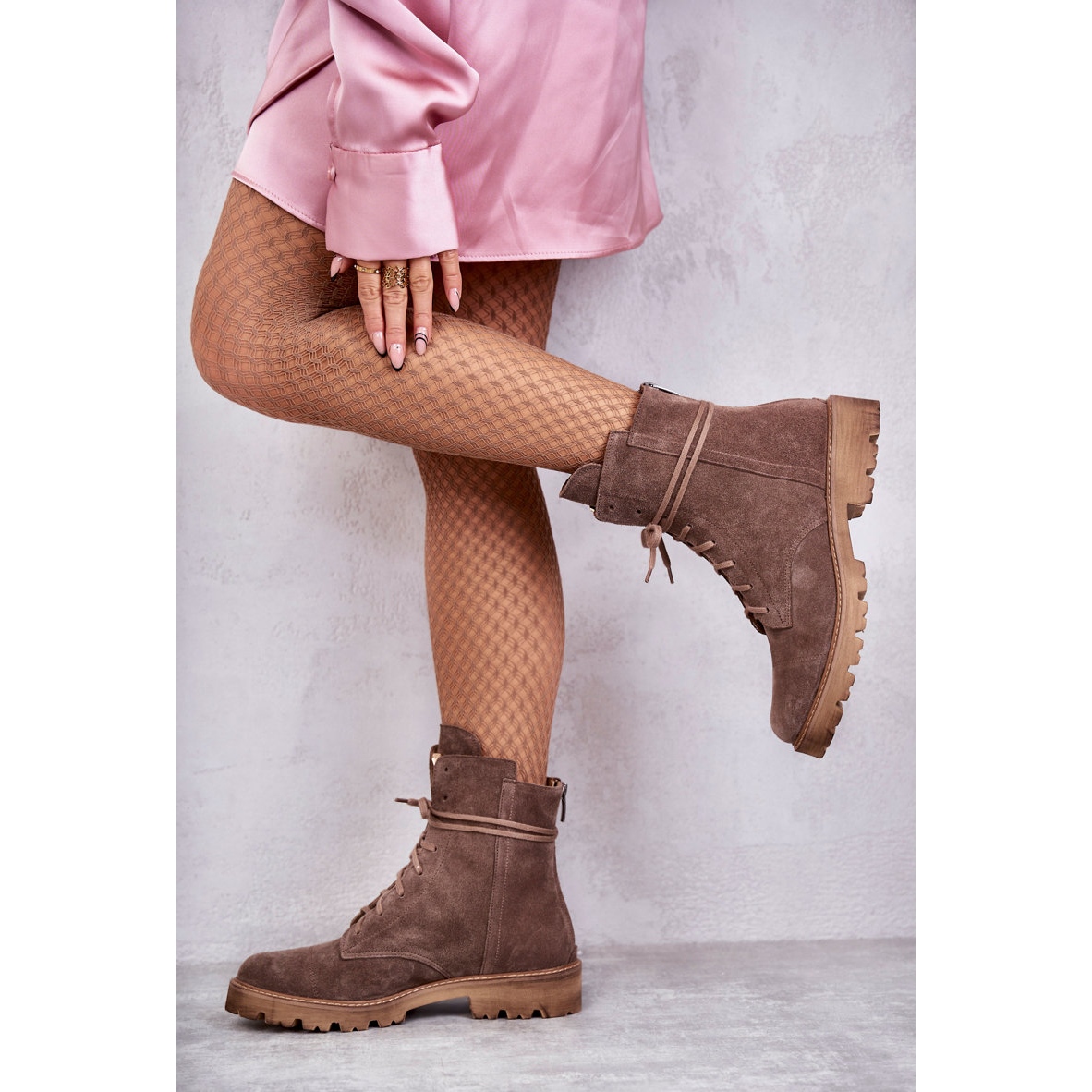 Bottes classiques pour femmes en cuir naturel de la plus haute qualité. Modèle avec coutures sur la tige. À l'arrière, il y a une fermeture à glissière qui facilite l'enfilage des chaussures, tandis qu'à l'avant, il y a un laçage qui vous permet d'ajuster correctement les chaussures. Les bottes sont montées sur un talon plat avec une bande de roulement massive. Commodité et confort d'utilisation - garantis !Lorsque vous choisissez une taille, veuillez utiliser le tableau des tailles.