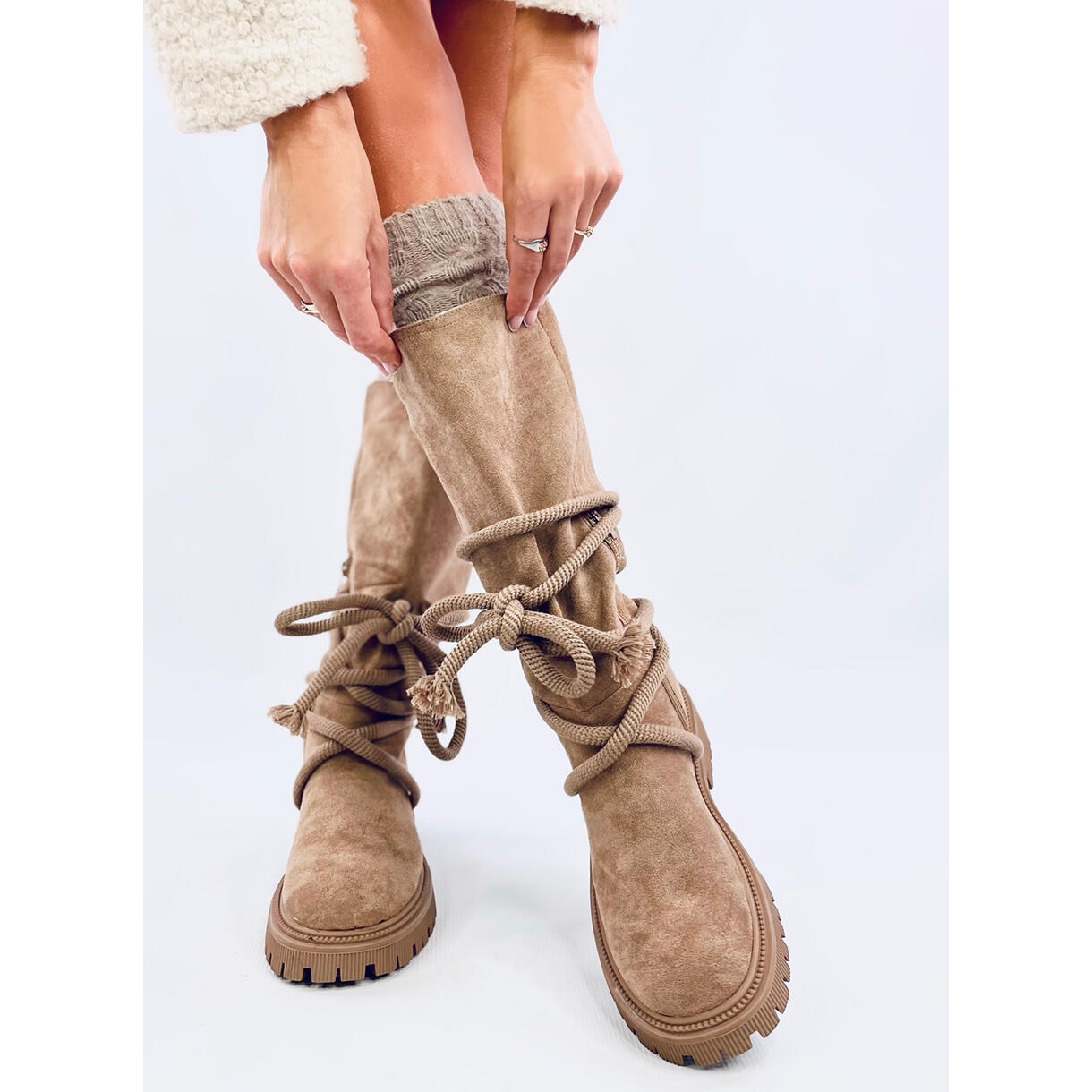 Découvrez un style et un confort uniques grâce à des bottes en daim avec un cordon beige ! Ces bottes classiques pour femmes sont une combinaison parfaite d'élégance et de fonctionnalité, parfaites pour un usage quotidien. La tige en daim écologique a été enrichie d'un cordon attrayant qui non seulement attire l'attention, mais permet également un style individuel - il peut être facilement retiré !
