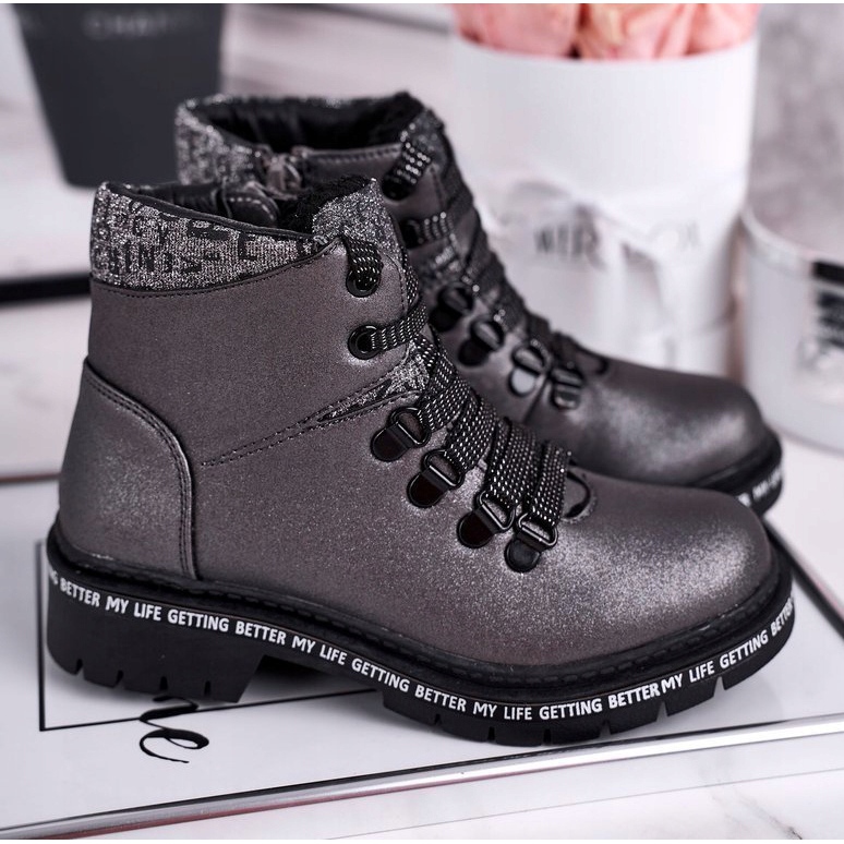 Les bottes pour enfants et jeunes avec un manteau en peau de mouton gris de la marque Snowflake sont un choix parfait pour les journées plus froides. Ces bottes montantes élégantes offrent non seulement une apparence attrayante, mais aussi confort et chaleur grâce à l'isolation en peau de mouton à l'intérieur. La tige des chaussures est en cuir écologique de haute qualité, qui s'intègre parfaitement dans différents styles, aussi bien du quotidien que plus élégants.
