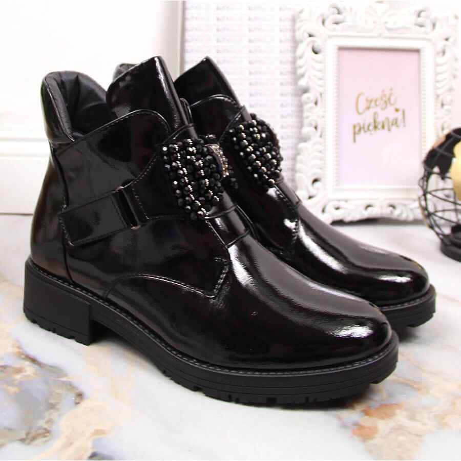 Les bottines vernies noires pour femmes de POTOCKI sont le choix parfait pour toutes les femmes qui apprécient l'élégance et le confort. Fabriqués en cuir écologique de haute qualité, ils se caractérisent par une subtile finition laquée qui leur confère un caractère unique.