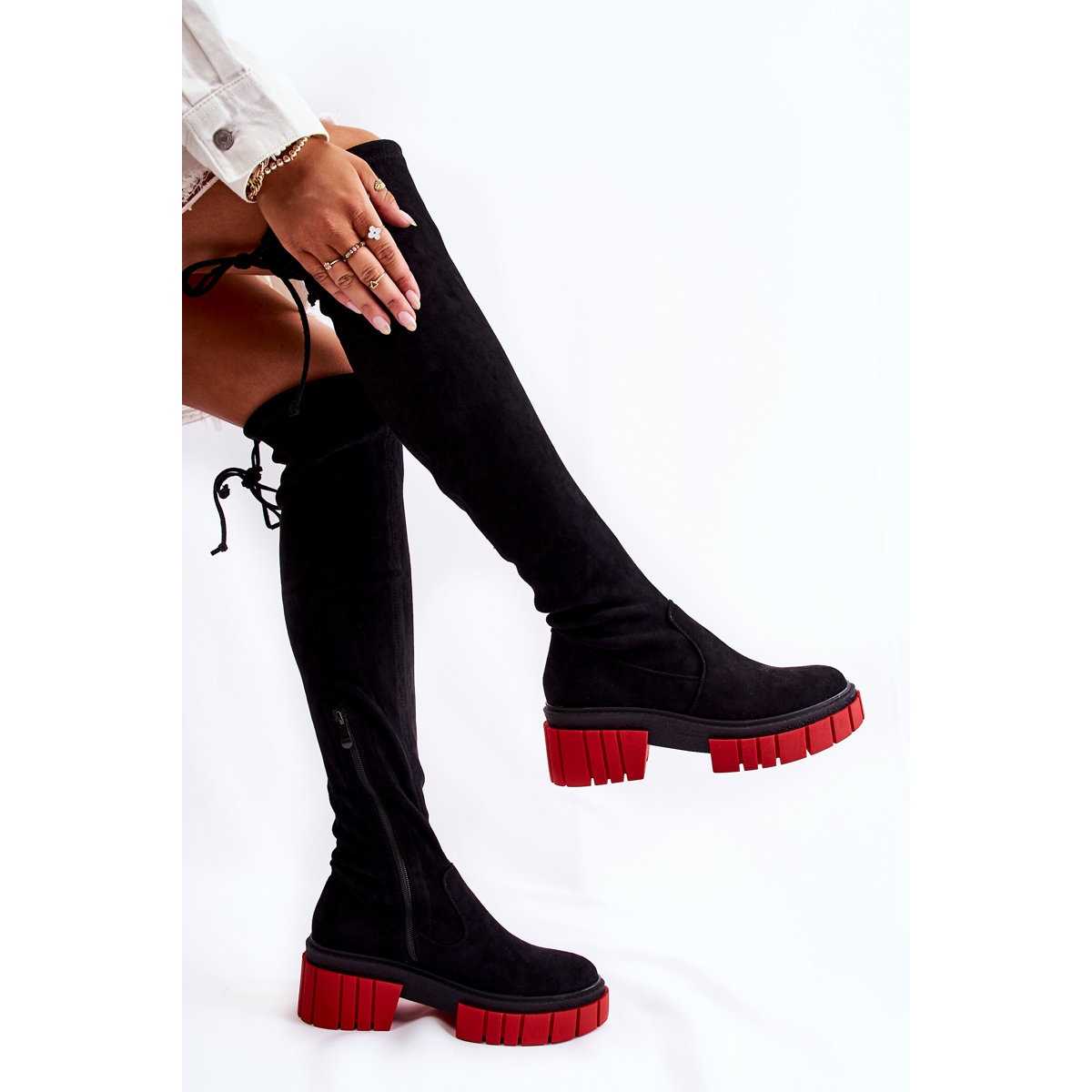 Détails: Boots Femme Daim Noir-Rouge Cheera le noir