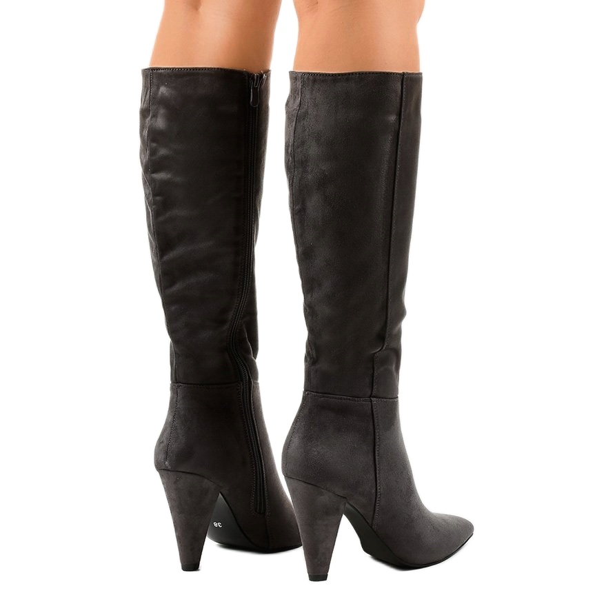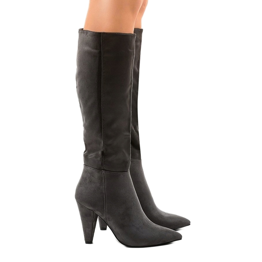 Commandez dès aujourd'hui les bottes à talons hauts en daim gris pour femme 8677 et profitez d'un look tendance et confortable tout au long de l'hiver !