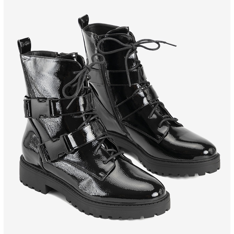 La hauteur de la cheville des chaussures les rend pratiques et confortables, et leur design approprié en fait un complément parfait à toute garde-robe. Préparé dans son emballage d'origine, parfait pour un cadeau. Choisissez les bottines Ferland vernies noires et profitez d'un look tendance chaque automne et hiver !