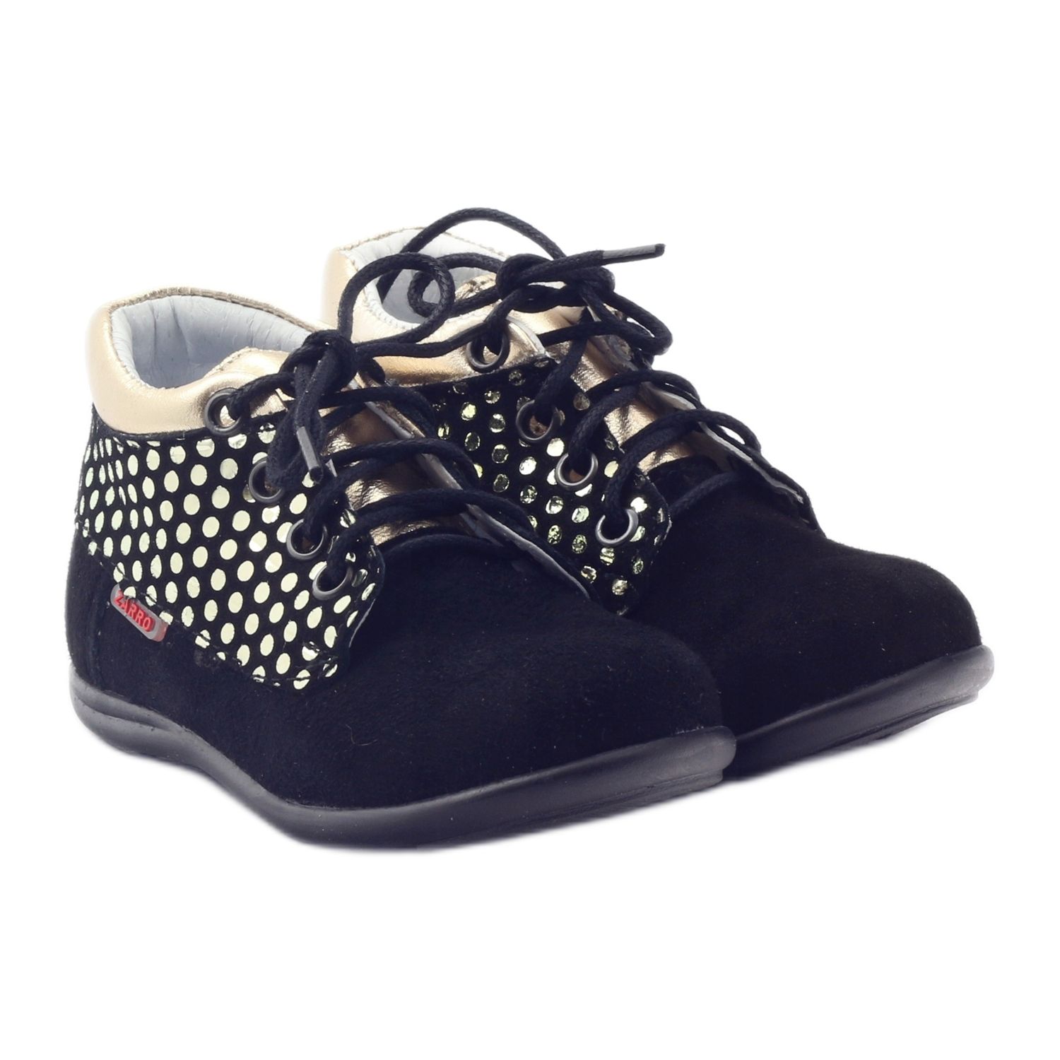 Découvrez l'élégance et le confort dans l'un des derniers modèles de chaussures pour filles de la marque polonaise Zarro. Le modèle 82/04 en noir avec des accents dorés est un choix parfait pour chaque petite femme qui veut se démarquer dans la foule.