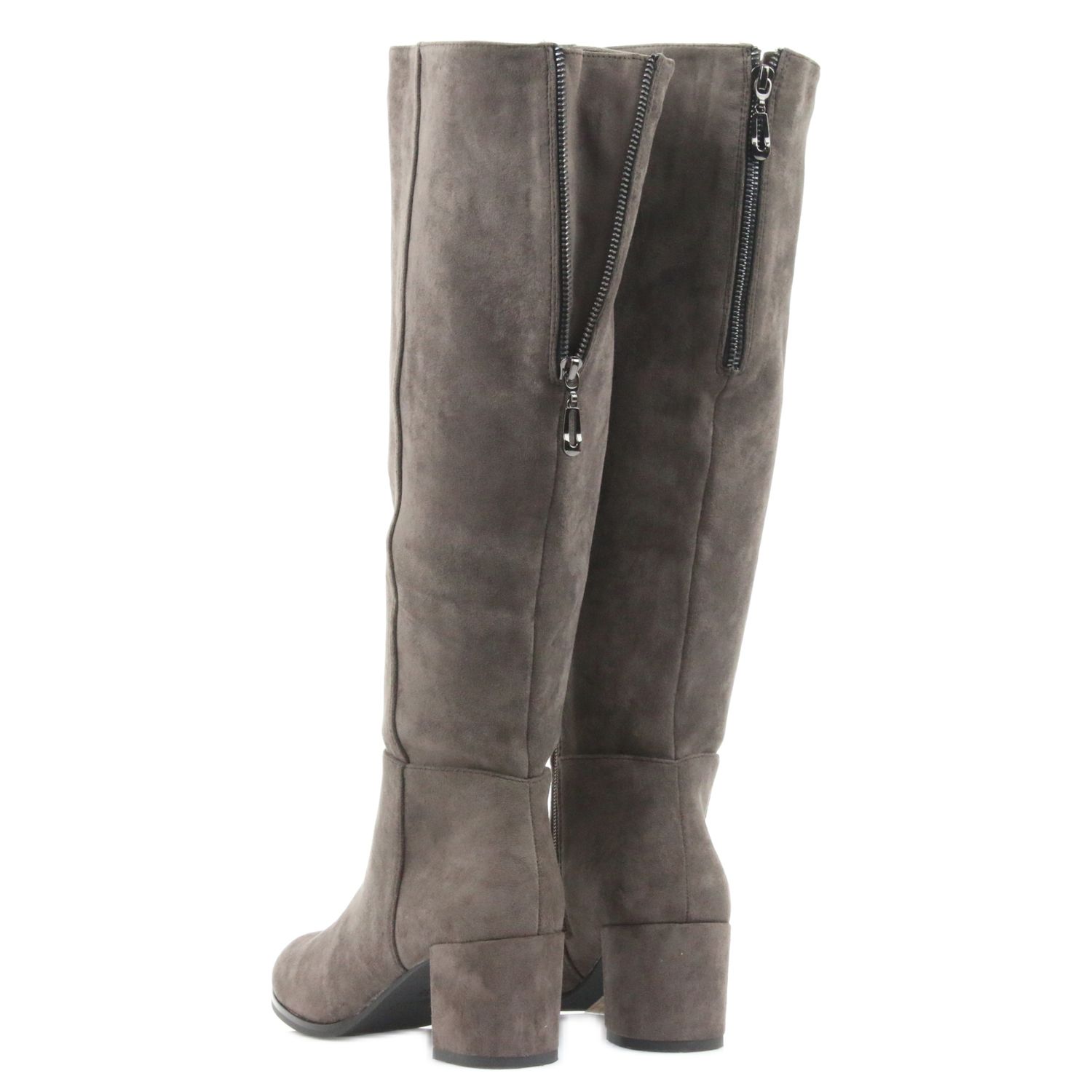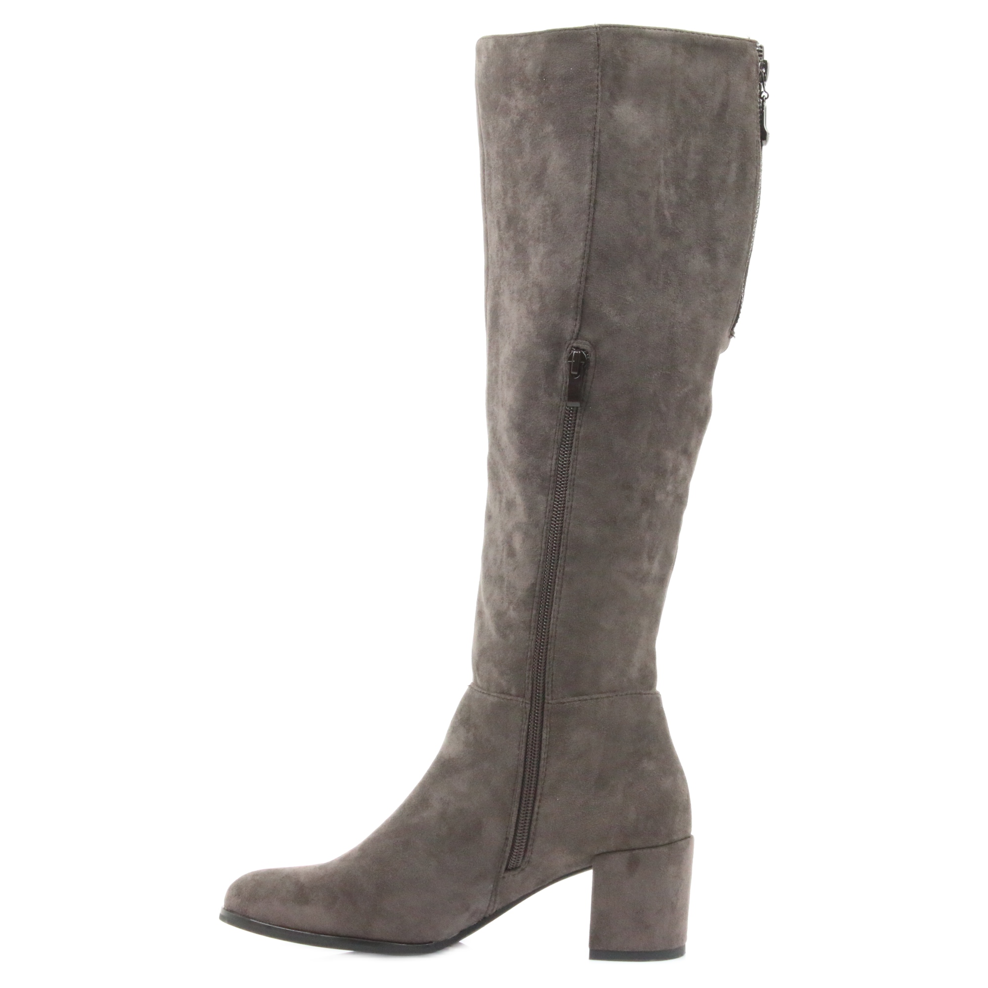 La tige haute, atteignant le genou, et la coupe classique rendent ces chaussures parfaites pour une variété de styles, du formel au décontracté. Le talon bas, de 6 cm de haut, assure stabilité et confort lors d'un port prolongé. Un avantage supplémentaire est la fermeture éclair pratique dans la partie supérieure de la tige, qui permet d'enfiler et d'enlever facilement les chaussures et augmente également leur largeur.