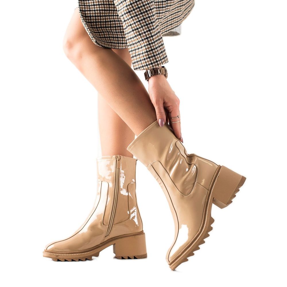 La couleur beige et marron des bottes les rend extrêmement universelles et faciles à combiner avec différents styles, du plus décontracté au plus élégant. Fabriquées en cuir écologique de haute qualité, les bottes sont non seulement impressionnantes, mais sont également respectueuses de l'environnement. La surface laquée leur confère un éclat unique, ce qui en fait un excellent choix pour les sorties en soirée.
