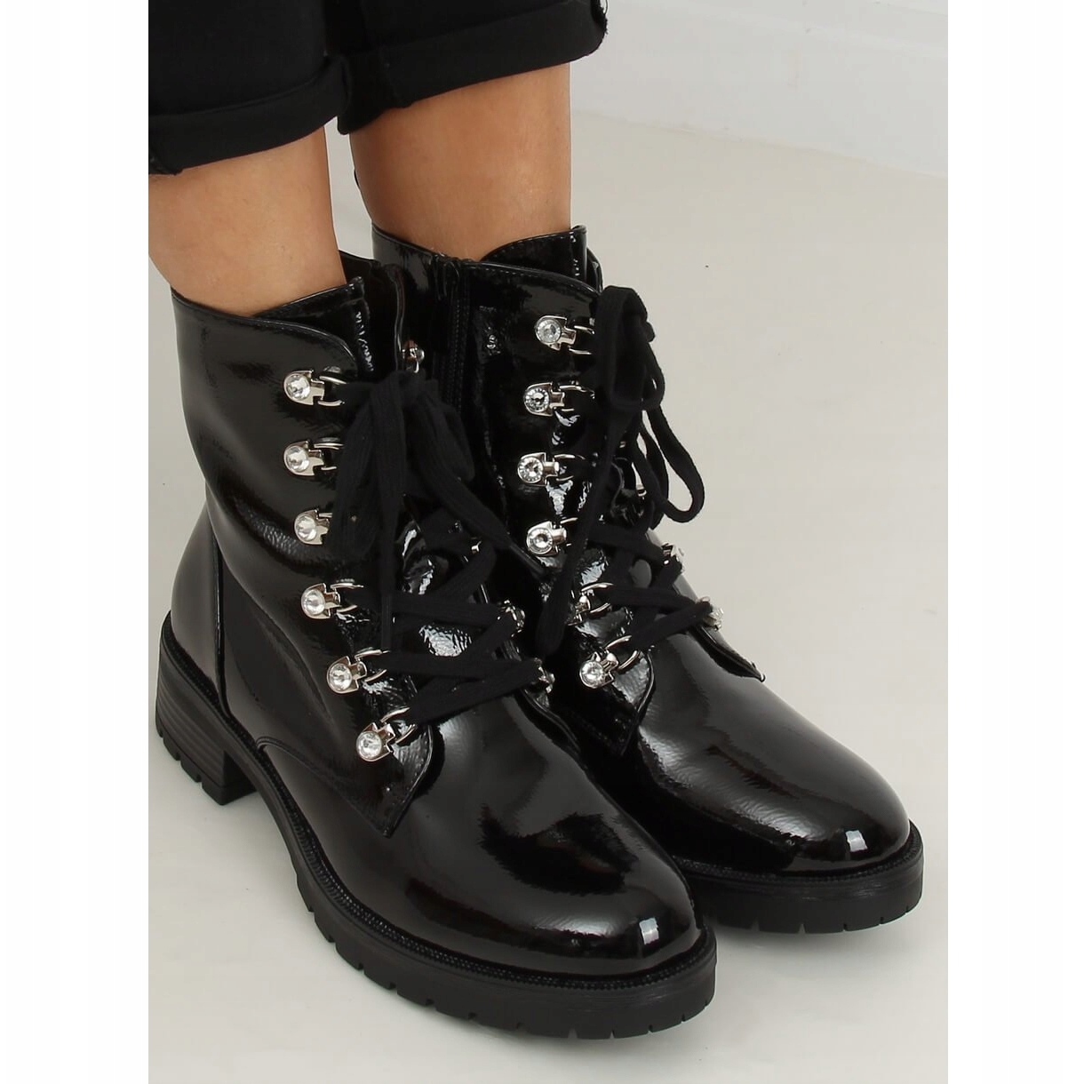 Découvrez les bottes bovver laquées noires uniques 7982-PA Black - le choix parfait pour les femmes qui veulent se démarquer de la foule. Ces bottines à lacets allient le courage de l'extravagance et du style élégant, et leurs accents brillants sous forme de pierres décorant les lacets attirent l'attention et donnent du caractère à n'importe quel style.