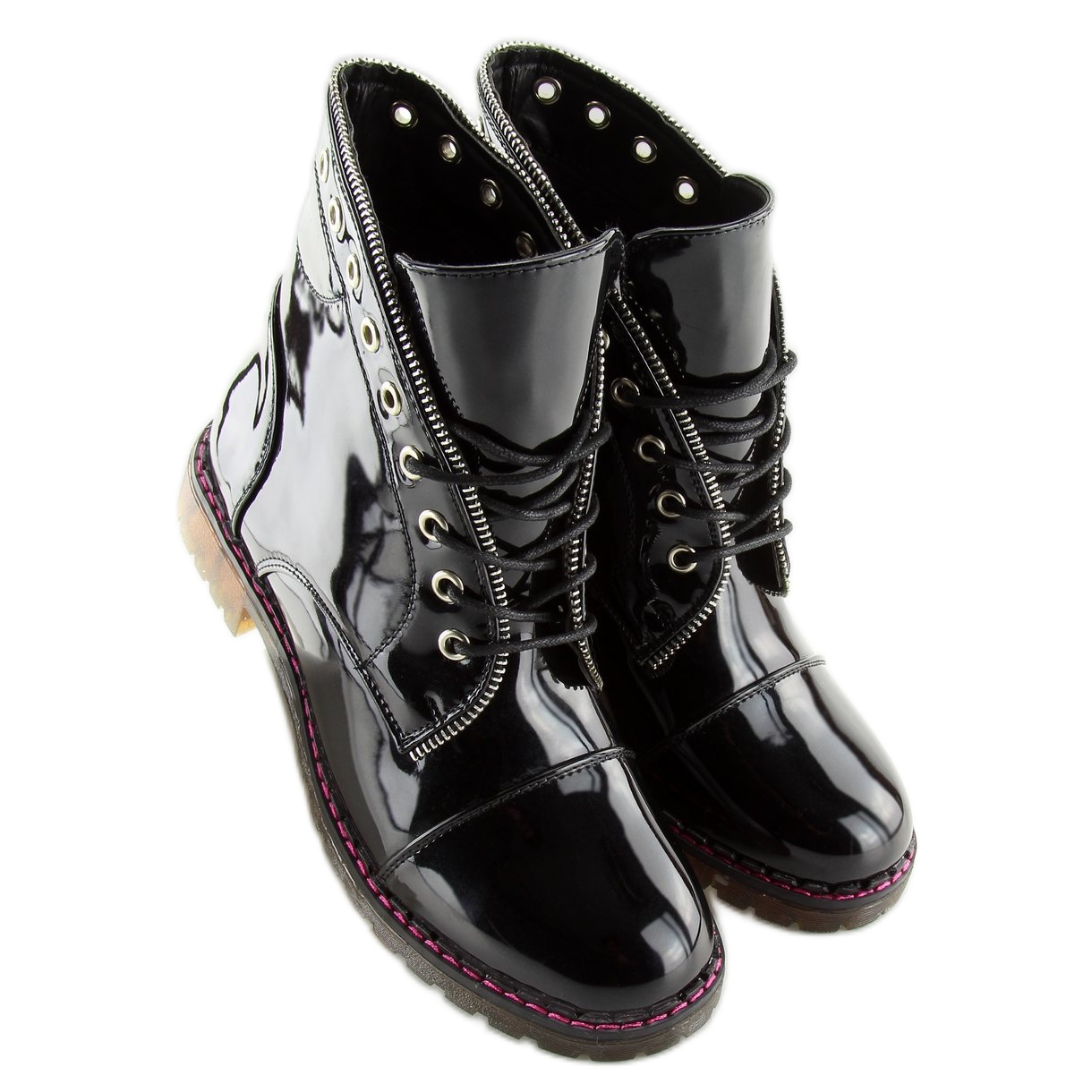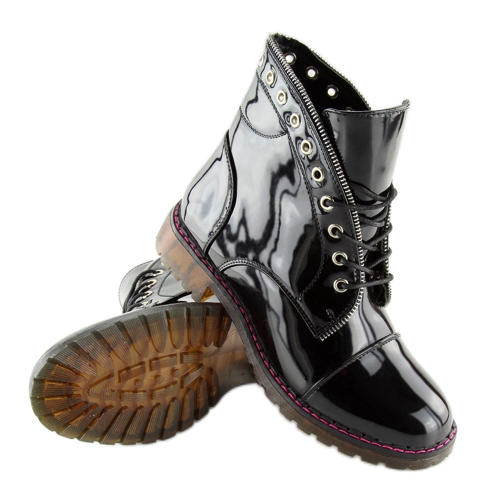 Nous vous invitons à découvrir des bottes uniques en cuir verni noir A-33 noir. Ces bottines à lacets pour femme sont la combinaison parfaite de style et de confort, parfaites pour les femmes qui veulent se démarquer de la foule.