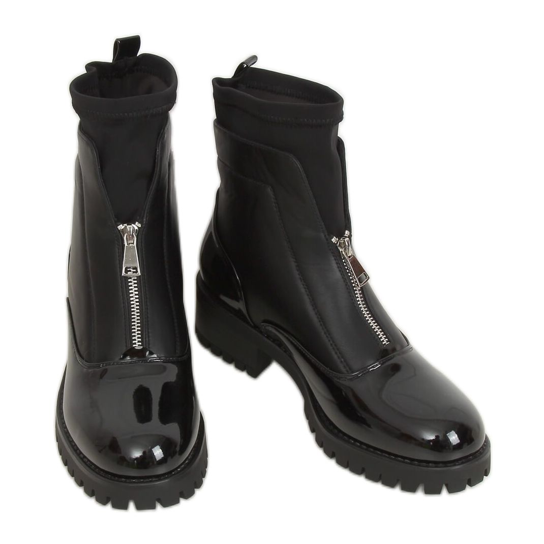 Leur couleur noire minimaliste les rend extrêmement universels et s'adapte à une variété de styles. La fermeture éclair argentée placée sur le devant leur confère un caractère unique et une expression moderne. La combinaison originale de matériaux - cuir écologique et tissu néoprène - rend les bottes non seulement esthétiques, mais aussi fonctionnelles.