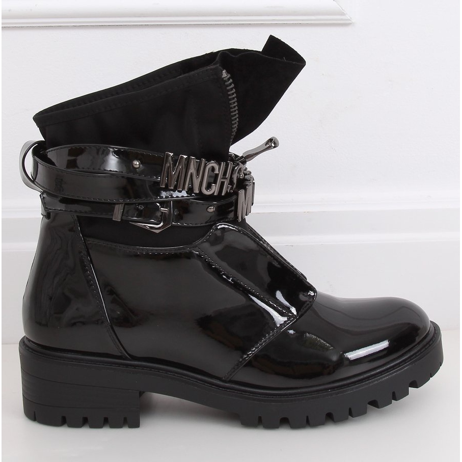 Inna marka Boots laquées sur semelle massive noire NC1039 Noir le noir
