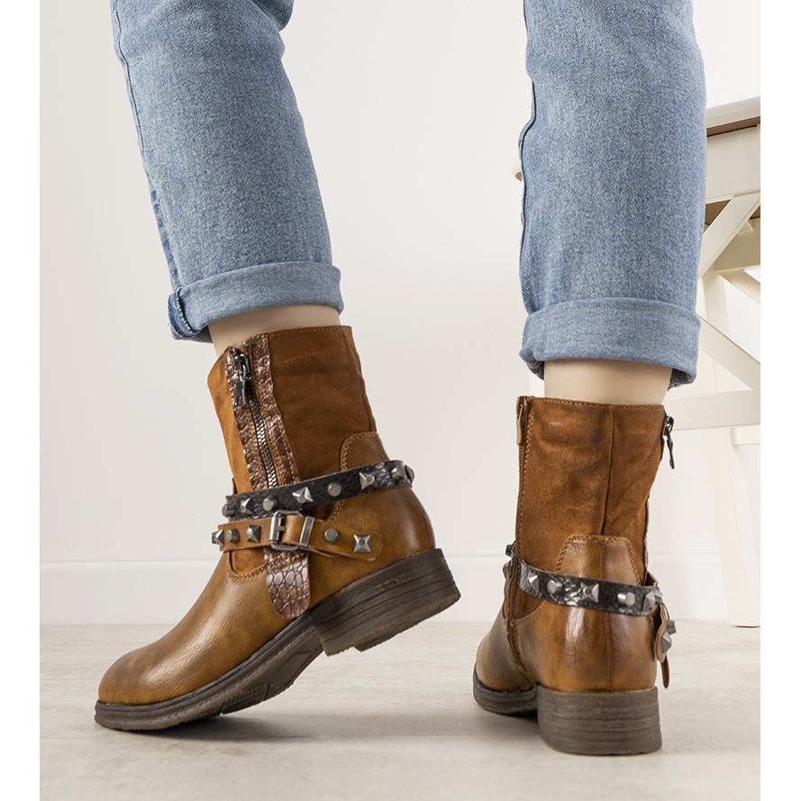 Le coloris "Camel" associé à une semelle en caoutchouc noir est une combinaison parfaite qui convient à de nombreux styles. Les bottines Elffie complèteront à merveille des tenues aussi bien décontractées que plus élégantes. Grâce aux strass et aux clous, ils deviennent non seulement un élément pratique mais aussi un élément tendance de chaque garde-robe.