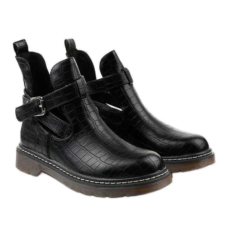 Les bottines noires à boucle Nillda sont un choix parfait pour les femmes modernes à la recherche d'élégance combinée à un peu d'avant-garde. Fabriquée en cuir écologique, la tige impressionne par une structure ressemblant à de la peau de serpent, ce qui leur confère un caractère unique. Les chevilles apparentes et la fermeture à boucle subtile font que ce modèle allie style et confort, s'adaptant parfaitement aux tendances de la saison.